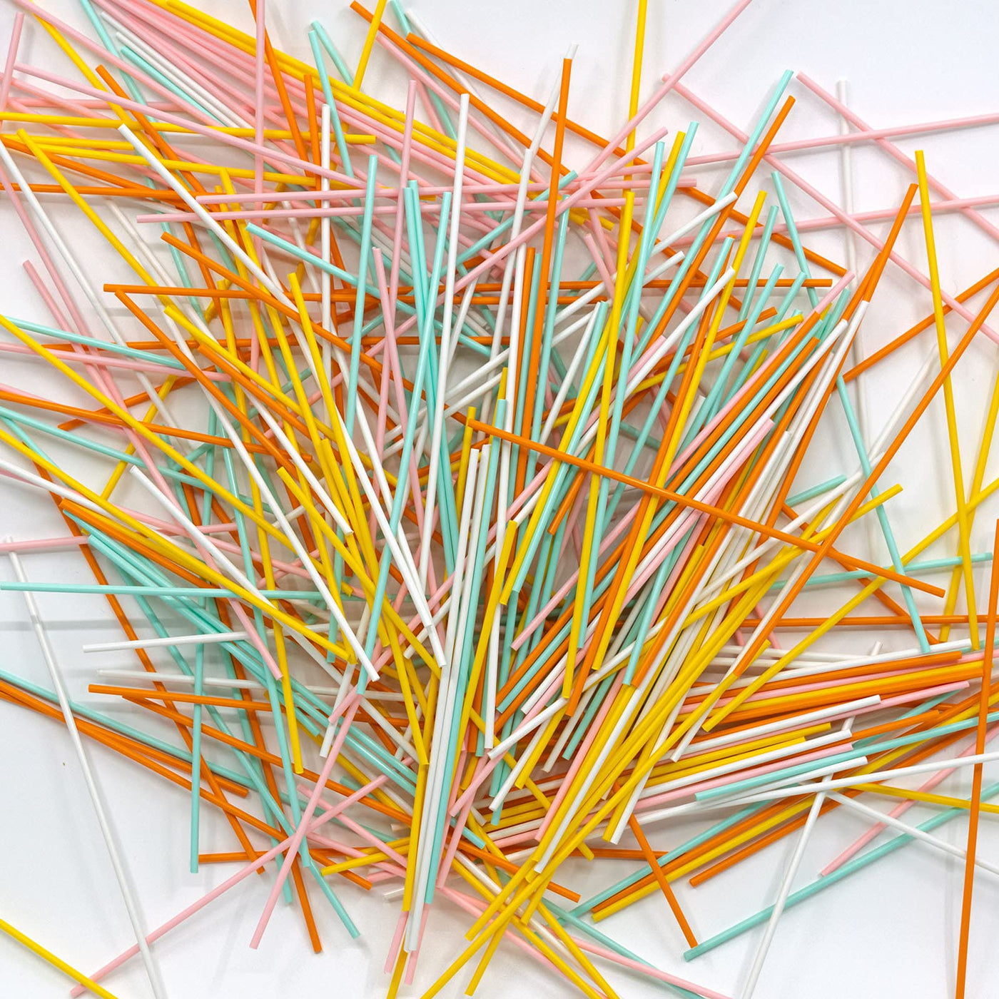 Q: What colors are included in the 3Doodler Start filament refill bag?A: The refill bag includes a total of 250 strands in five vibrant colors: White, Pink, Mint, Yellow, and Orange, providing a wide range of creative possibilities.