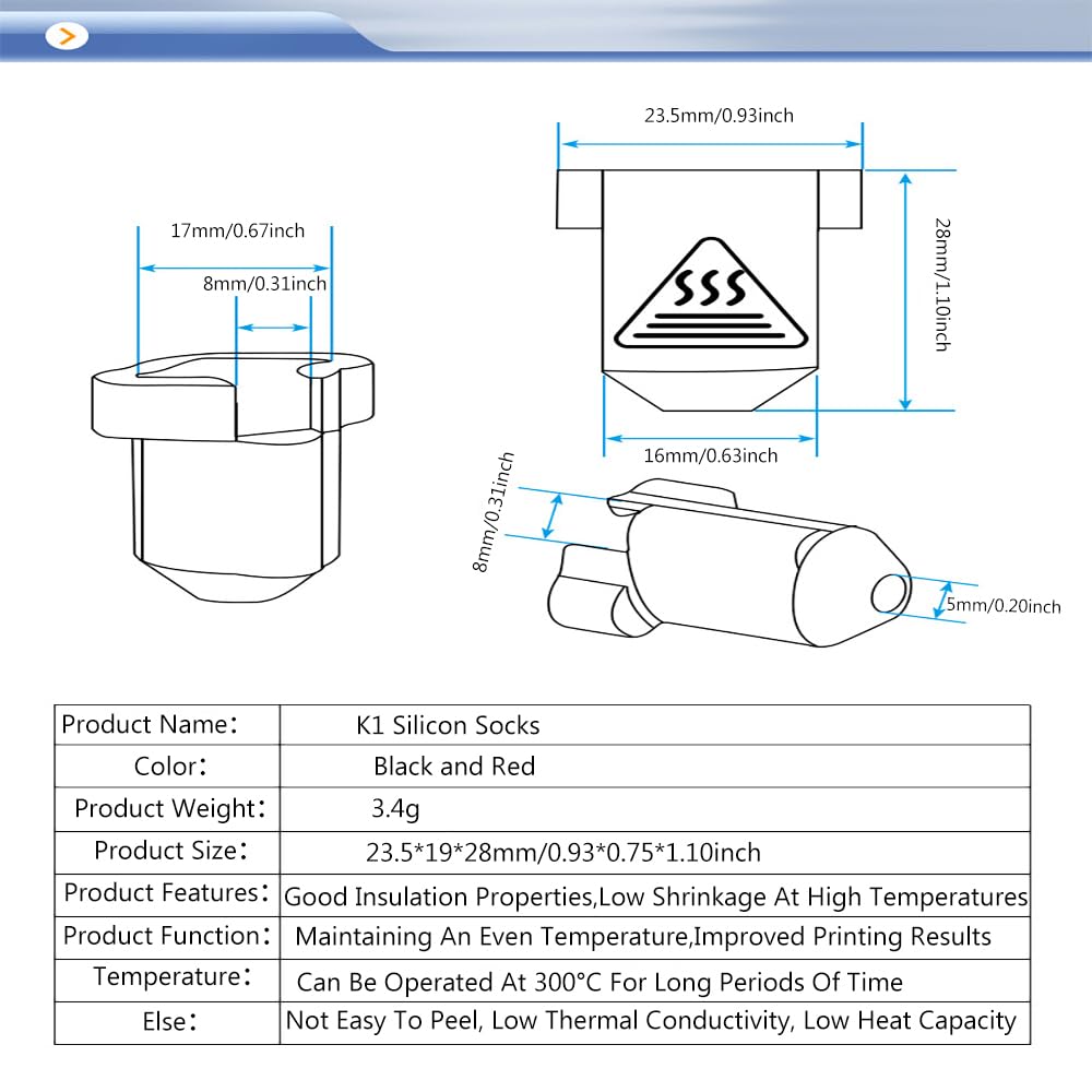 4Pcs Silicone Socks Cover For 3D Printer K1/K1 Max/Ender 3 V3 Ke/Cr10 Se, High Temperature And Durable Silicone Cover 3D Printer Accessories Parts Protecting Extruder Heater Block And Nozzlespecification:Model: Heater Block Silicone Socks Covermaterial: High Quality Siliconecolor: Black And Redneed To Pay Attention:This Is A Small Part Of The 3D Printer. Please Keep It Away From Children To Prevent The Risk Of Swallowing!Package Included:4 X Heater Block Silicone Socks Cover