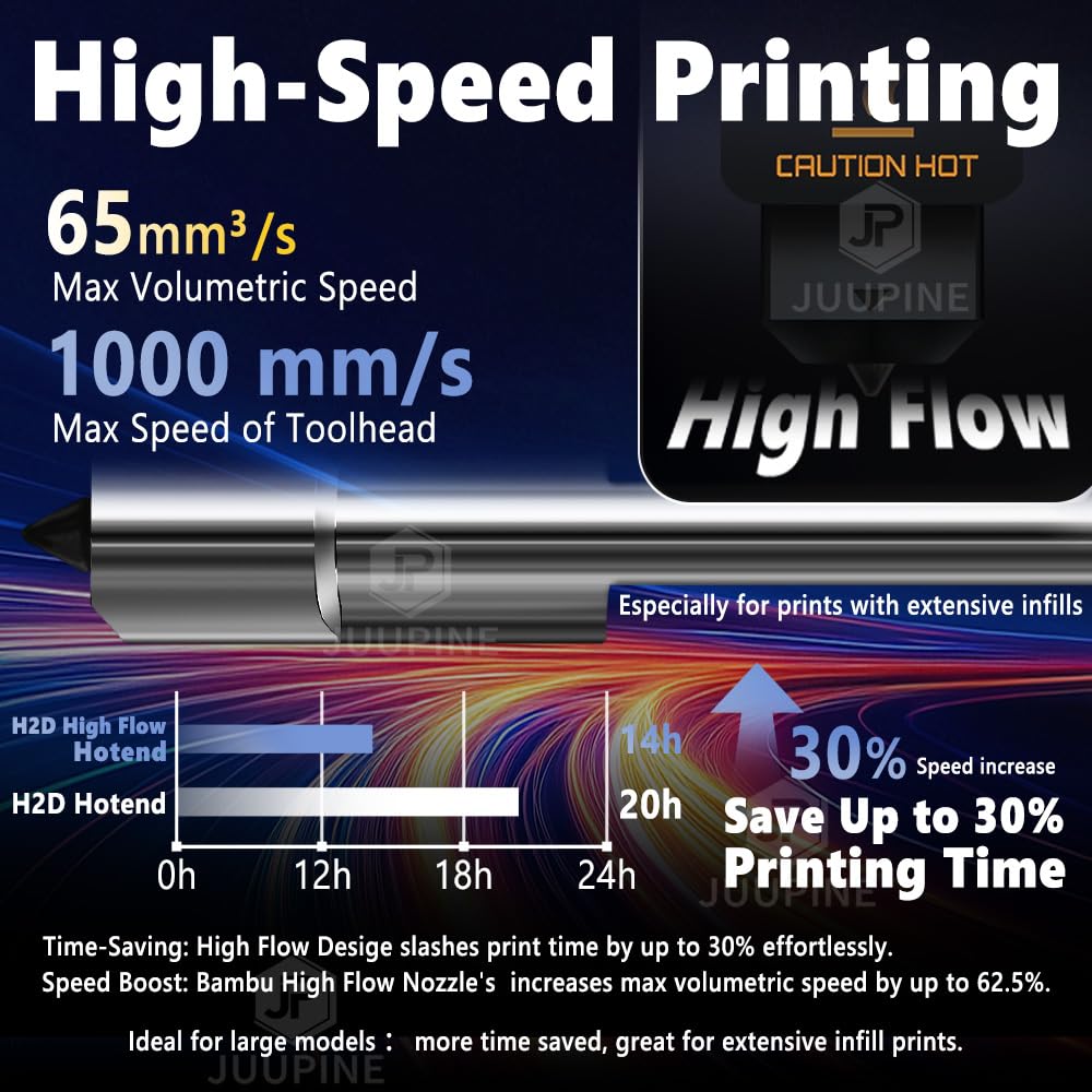 65Mm/S Max Volumetric Speed High Flow H2D Hotend 0.4Mm Hardened Steel Nozzel Replacement Kit For Bambu Lab H2D/A1/A1 Mini,High-S