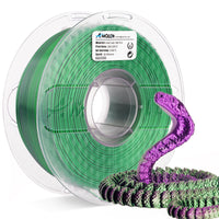 Q: How does the dual color feature work in AMOLEN Silk PLA?A: The dual color feature of AMOLEN Silk PLA allows you to create prints that exhibit different colors on each side, thanks to its unique shiny purple and green combination. This makes it perfect for artistic projects and eye-catching designs.
