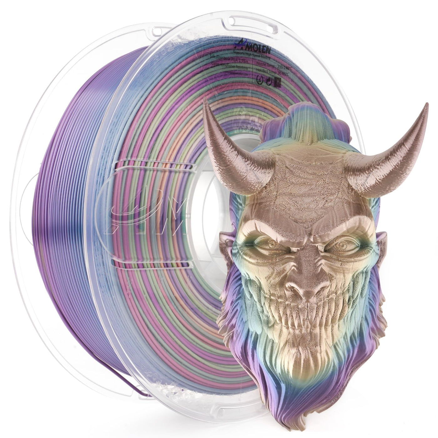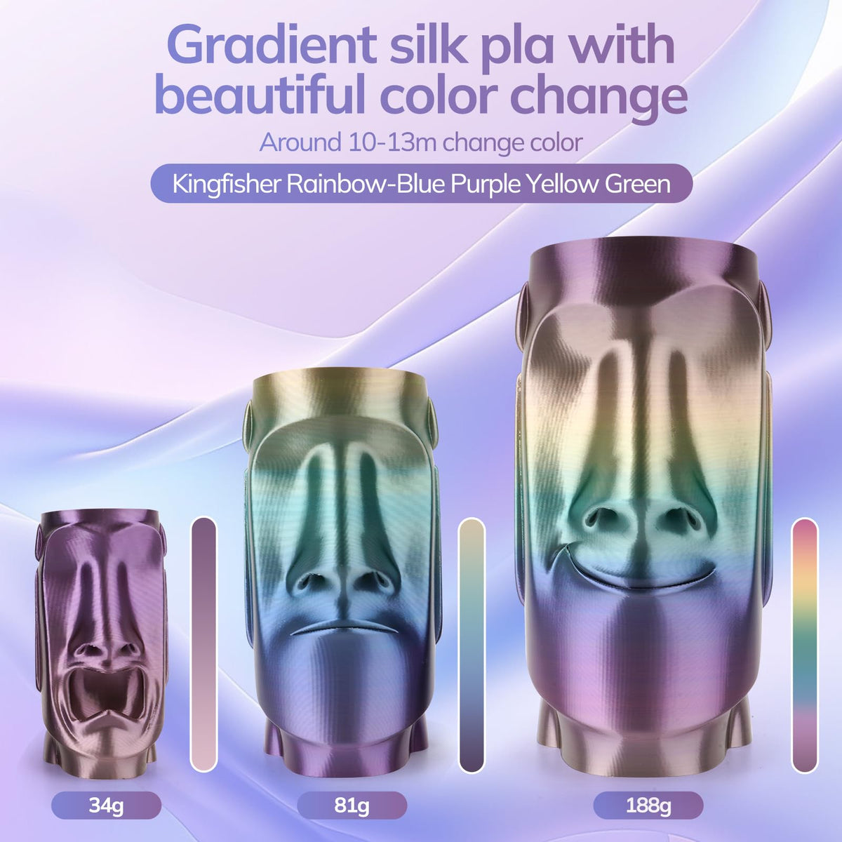 Amolen Silk Pla 3D Printer Filament, Shiny Multicolor Kingfisher Rainbow Pla Filament 1.75Mm, Gradient Color Change Pla 3D Print