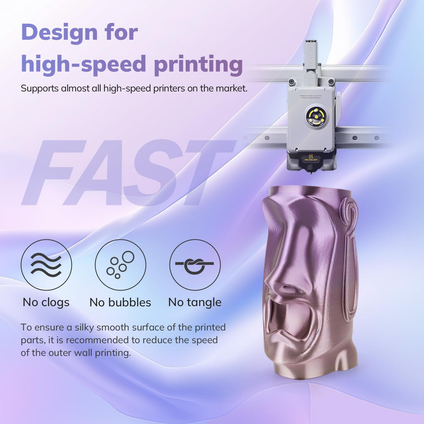 Q: What makes AMOLEN Silk PLA unique compared to standard PLA filaments?A: AMOLEN Silk PLA stands out due to its shiny, multicolor rainbow finish that creates eye-catching prints with a smooth, glossy surface. It allows for a gradient color change, providing a unique aesthetic that enhances the visual appeal of 3D creations.