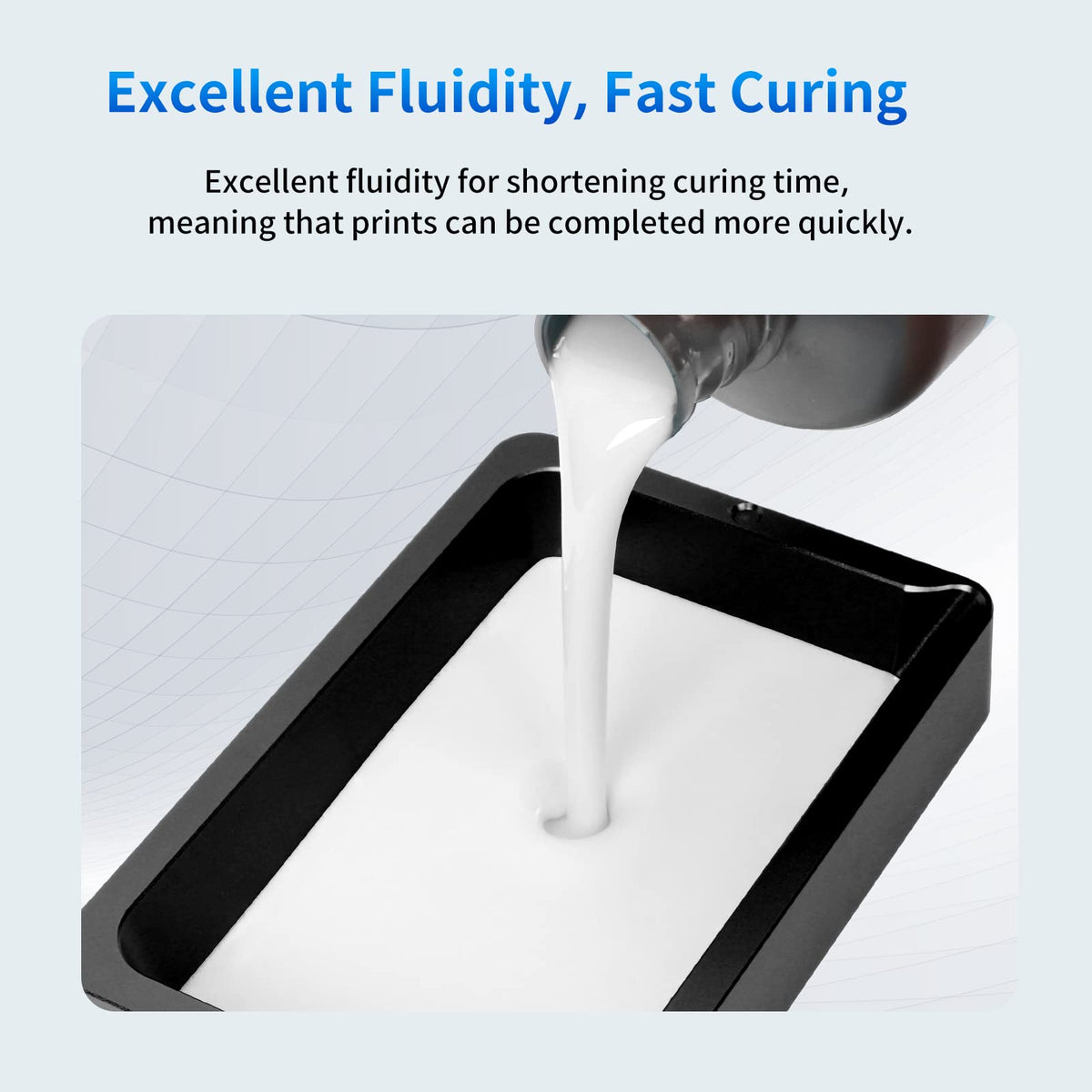 Q: How does the ANYCUBIC 3D Printer Resin perform in terms of print detail and speed?A: The resin provides high precision and rapid photopolymerization, allowing for detailed prints with improved speed, especially suitable for 8k resolution printers like the Photon Mono X.