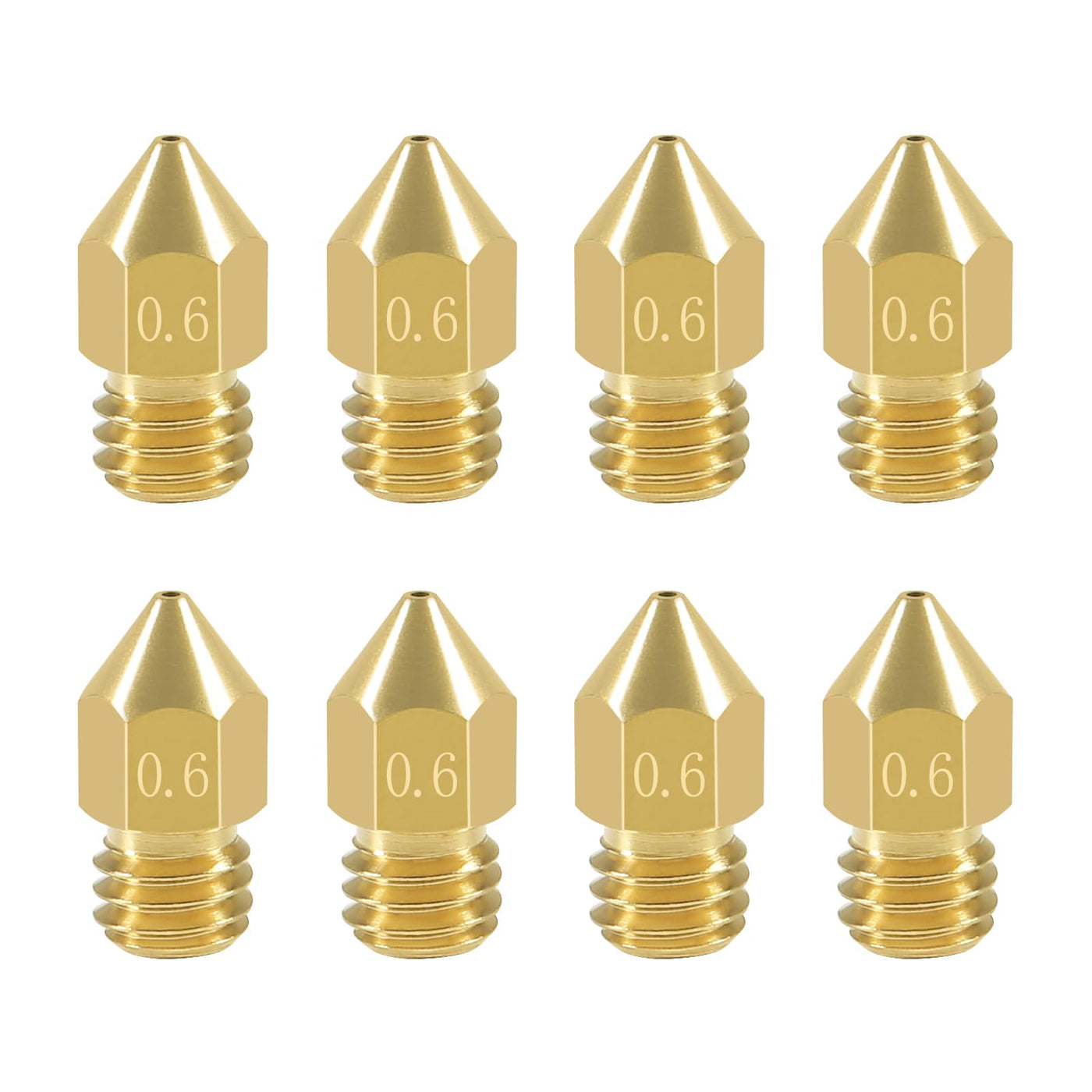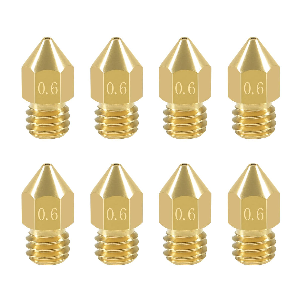 Package Includes:8 X 06Mm 3D Printer Mk8 Extruder Nozzlenbspcompatible:3D Printer With Mk8 Style Hotend External M6 Thread, Such As For Creality Ender 33 Pro, Ender 3 V2, Ender 55 Pro, Cr-1010S, Makerbot Mk8, Reprap Prusa I3, Tevo Tarantula, Anet A8, And Other 3D Printersnote:After Replacing The Nozzle, Please Recalibrate The Distance Between The Nozzle And Build Plate To Ensure The Quality Of The Print Parts
