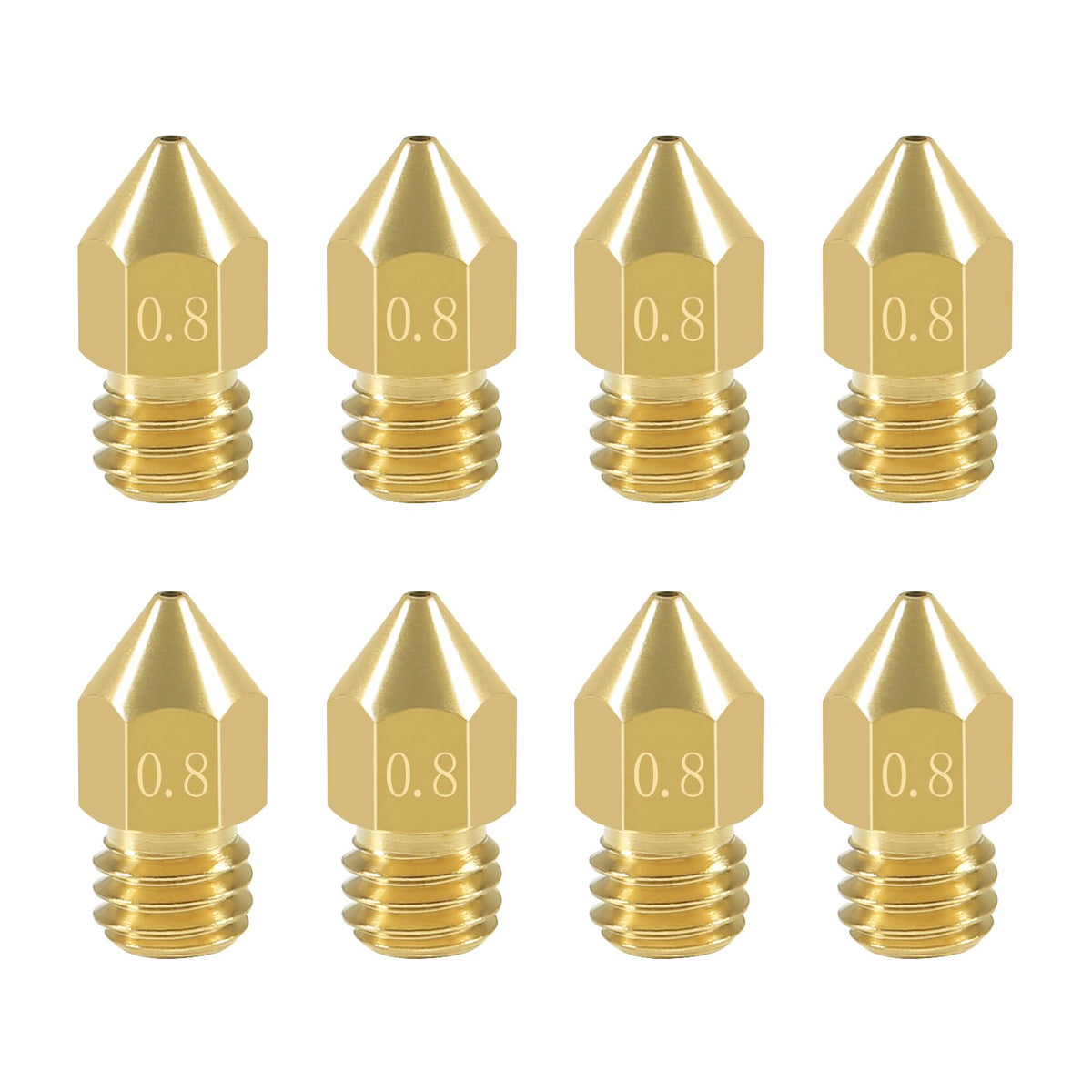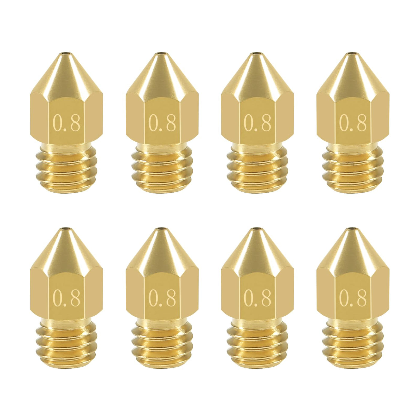 Package Includes:8 X 08Mm 3D Printer Mk8 Extruder Nozzlenbspcompatible:3D Printer With Mk8 Style Hotend External M6 Thread, Such As For Creality Ender 33 Pro, Ender 3 V2, Ender 55 Pro, Cr-1010S, Makerbot Mk8, Reprap Prusa I3, Tevo Tarantula, Anet A8, And Other 3D Printersnote:After Replacing The Nozzle, Please Recalibrate The Distance Between The Nozzle And Build Plate To Ensure The Quality Of The Print Parts