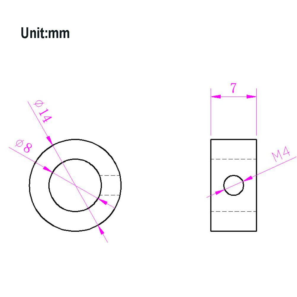 Specification: Color: Silver Material:45# Steel Thread Size: M4 Net Weight: 5G Total Size: Od 14Mm, Id 8Mm, Height 7Mm Package List: 10Pcs 8Mm Lock Collar 1Pcs M4 Hex Wrench 10Pcs Screws