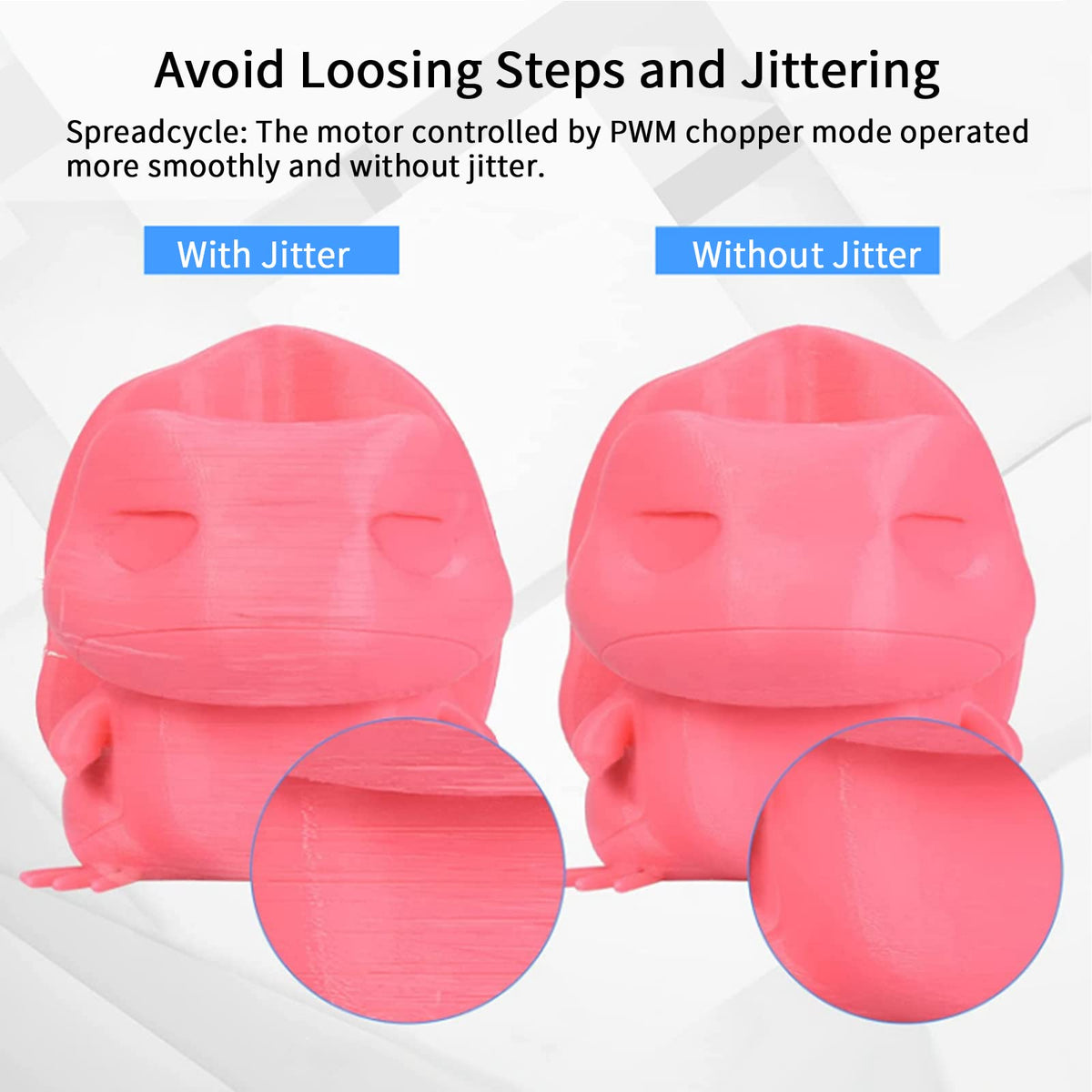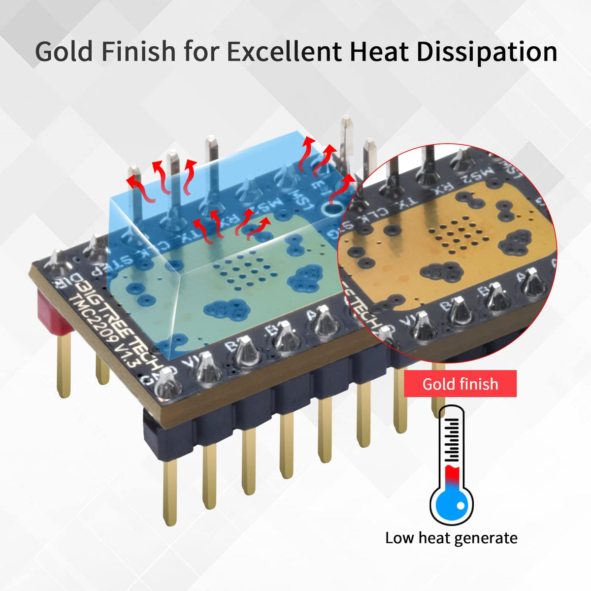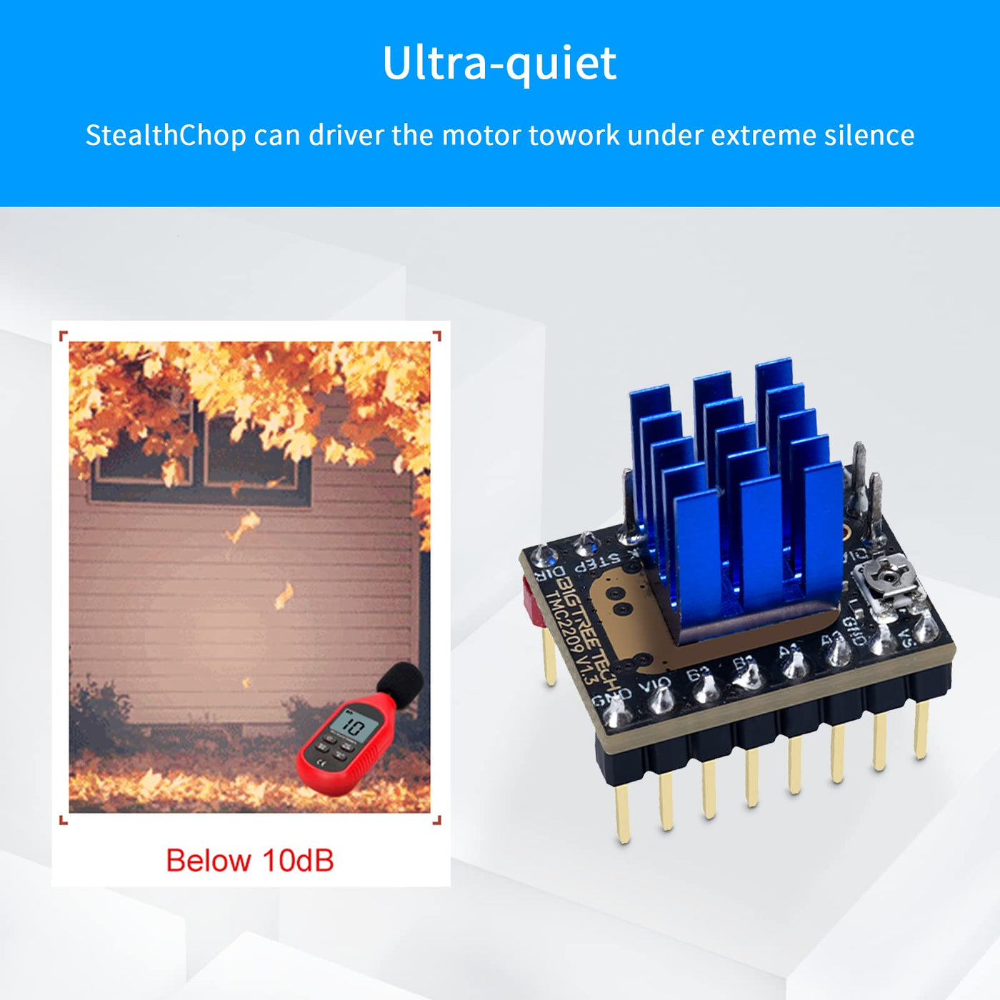 Q: How does the TMC2209 driver improve 3D printing performance?A: The TMC2209 driver enhances 3D printing performance by providing quieter operation, lower heat generation, and dynamic current adjustment, which can save up to 75% of electrical energy while ensuring smoother and more efficient motor control.