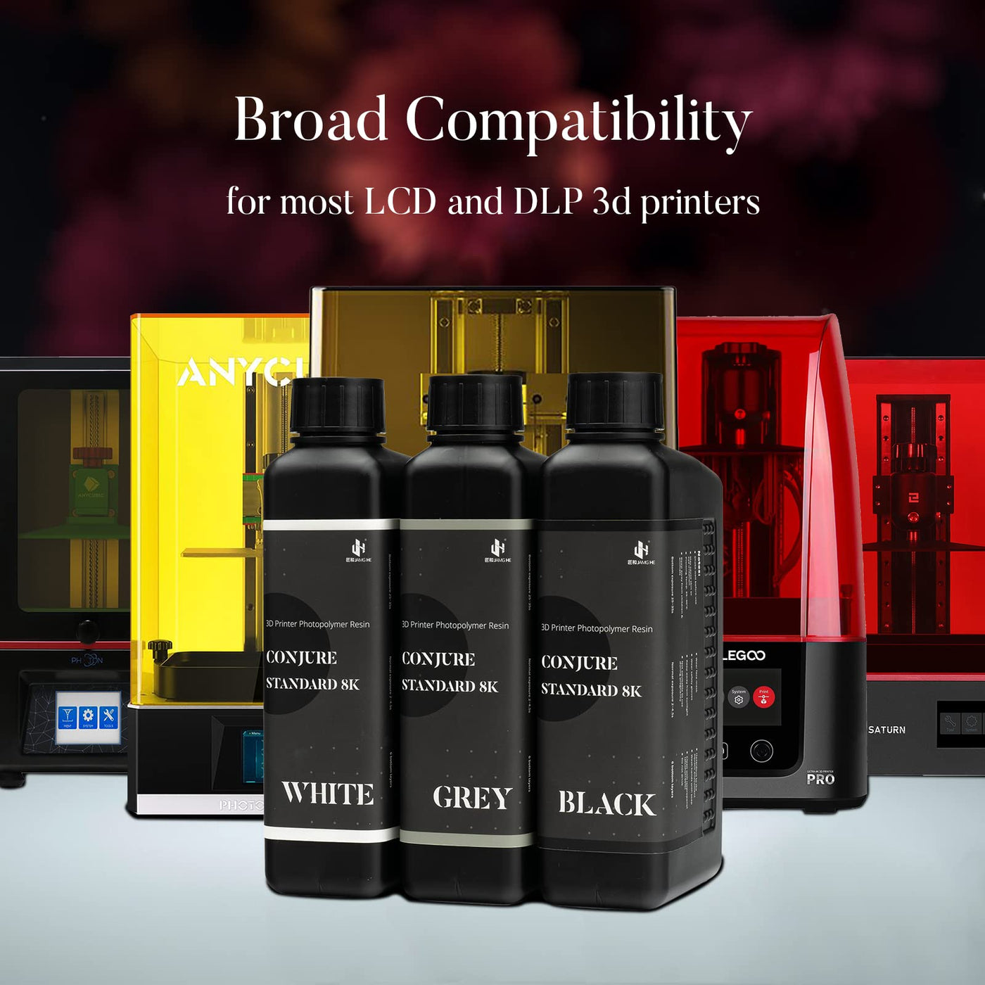 ?Cost-Effetive?Conjure Standard 8K Photopolymer Resin Is Cheaper And Faster Than Other Conjure Functional Resin,It Is More Brittle But A Better Choice If You Only Focus On The Print Details And Cost-Effetive. | ?Upgraded Strength And Durability?Experience Robust, Impact-Resistant Creations, Perfect For Functional Prototypes And Mechanical Assemblies. It Is Tougher Than First-Generation Standard Resin. | ?Exceptional Performance?Enjoy Enhanced Printing Precision, Remarkable Details, And Consistent Curing Without Discoloration. Achieve A Smooth Surface Finish With An Impressive Resolution. | ?Easy To Clean And Light Odor?Conjure Standard 8K 405Nm Resin Can Be Cleaned With Isopropyl Alcohol Or Ethanol, Which Is Very Easy To Clean. The Smell Is Relatively Light, And The Resin Odor Will Quickly Dissipate After Printing. | ?Broad Compatibility?Conjure Standard Fast Resin Is Designed To Work Seamlessly With A Wide Variety Of Lcd And Dlp 3D Printers, Compatiable With Elegoo/Phrozen/Anycubic Models,It Also Compatible With The Newest Fast Printing Printer Mono M5S, Halot Mage, And Mini 8Ks.