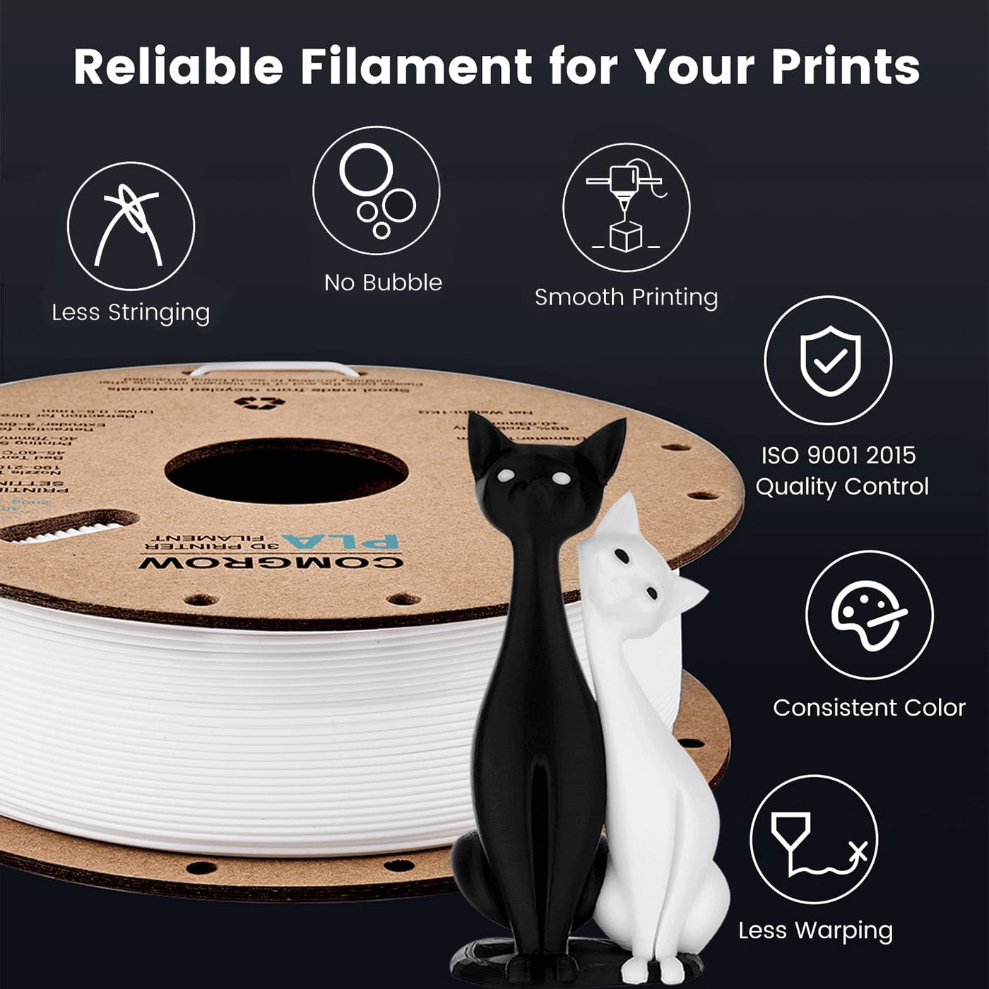 Comgrow Pla 3D Printer Filament, 3D Printer Pla Filament 1.75Mm, Dimensional Accuracy +/ 0.02 Mm, 2 Rolls Of 1Kg Spool Pla Whit