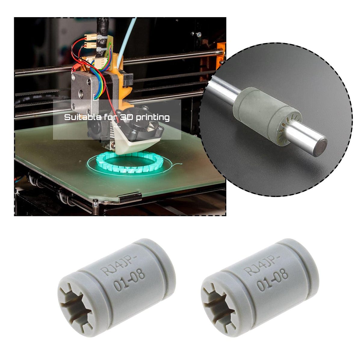 Q: Is the RJ4JP-01-08 bearing compatible with my 3D printer?A: Yes, the RJ4JP-01-08 linear bearing is compatible with various 3D printers, including models like RepRap, Mendel, Anet A8, A6, Makerbot mk8, and Creality Flashforge.