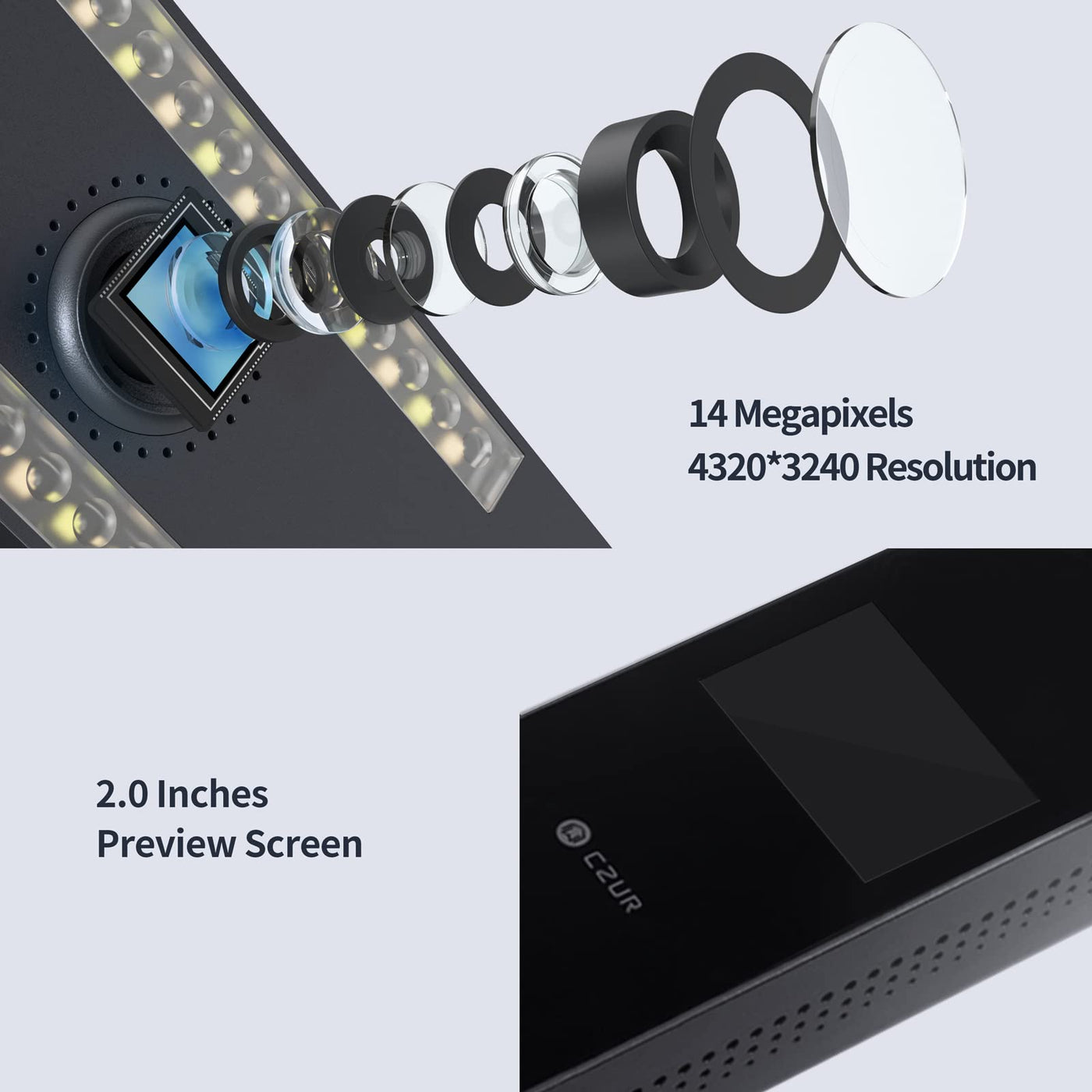 Czur Aura Pro Book & Document Scanner,Capture A3 & A4, Auto Flatten & Deskew Powered By Ai Technology, Foldable & Portable, Comp