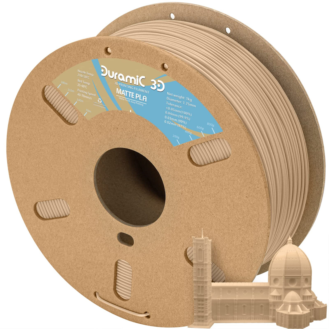 Duramic 3D Matte Pla Filament 1.75Mm Beige, 1Kg Cardboard Spool Matte Finish 3D Printer Filament Pla 1.75Mm Dimensional Accuracy