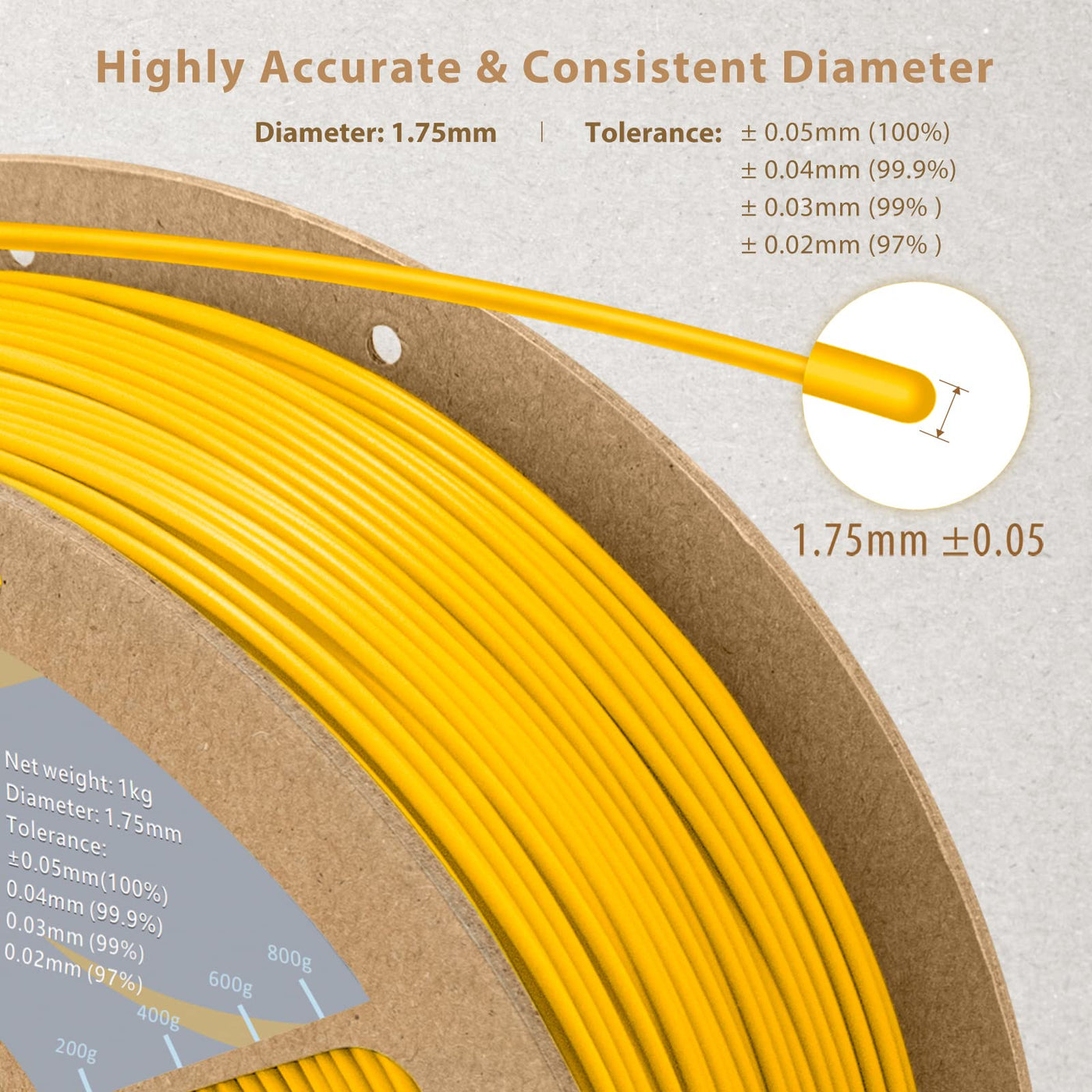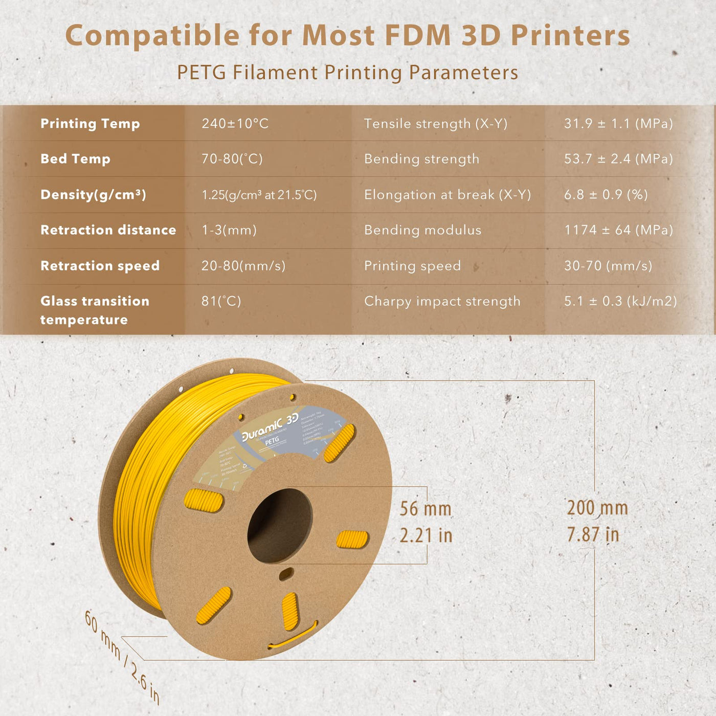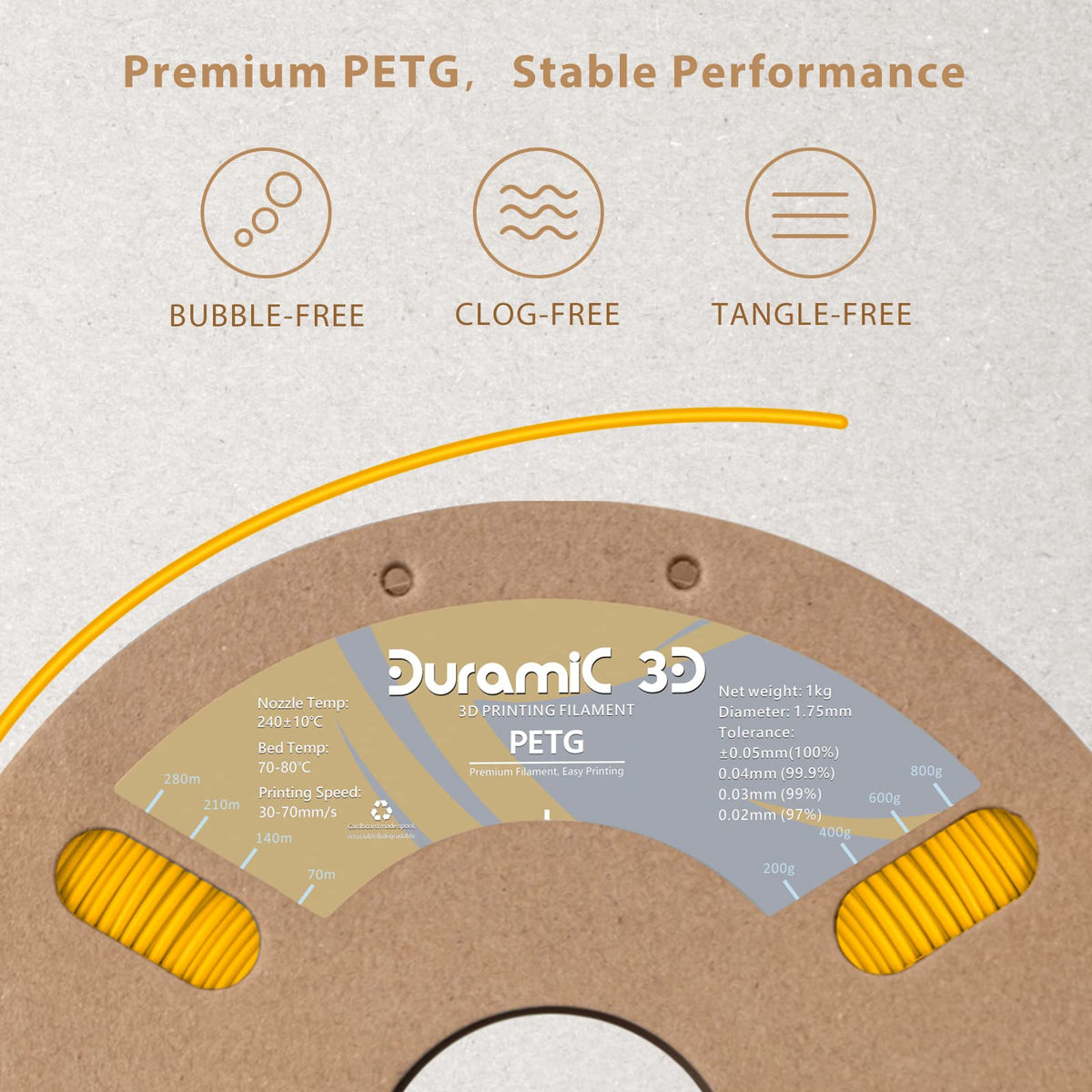 Duramic 3D Petg Filament 1.75Mm Yellow, 3D Printing Filament 1Kg Spool(2.2Lbs), Yellow Filament 1.75Mm Dimensional Accuracy +/