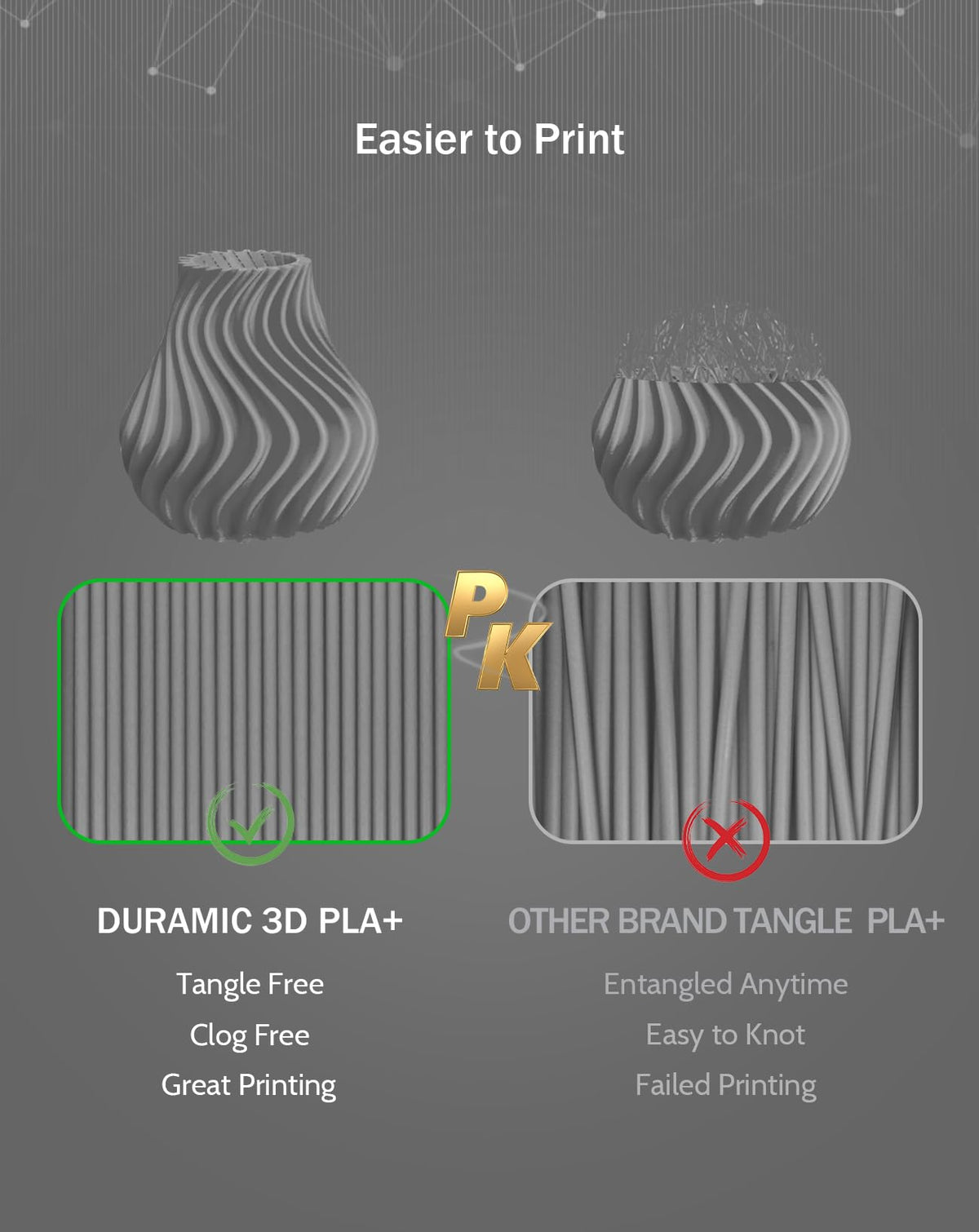 Q: Is the DURAMIC 3D PLA Plus Filament compatible with all 3D printers?A: While DURAMIC 3D PLA Plus Filament is designed to be compatible with most 3D printers, it is advisable to check your printer's specifications and settings, as different printers may require unique adjustments for optimal results.
