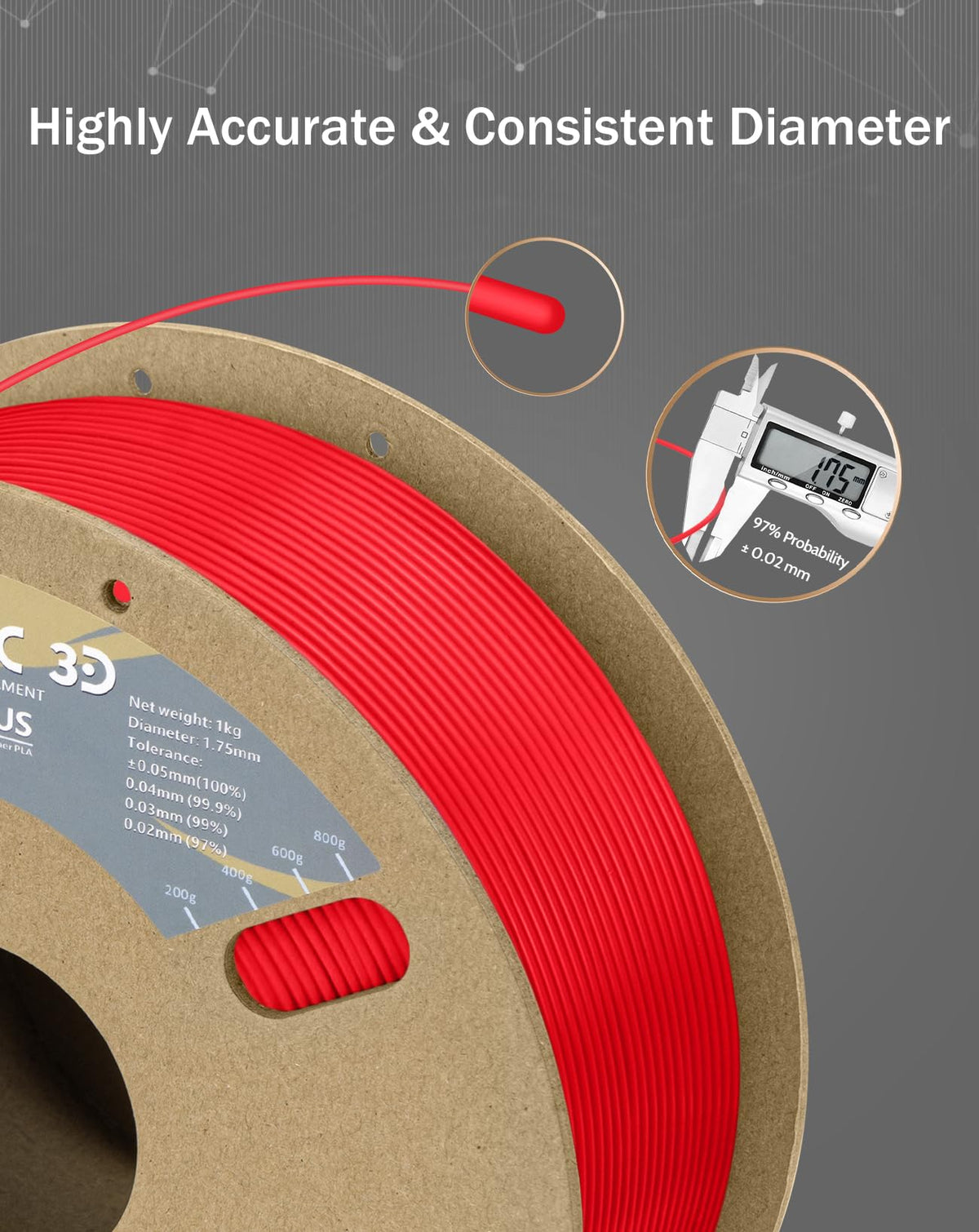 Duramic 3D, Your Trustworthy Cost-Effective Go-To Filaments Brand! Whats Duramic 3Ds Guarantee? Duramic 3D Guarantees You Risk-Free Purchase, Youll Get One-Month Free Trial, Lifetime Quality Promise And Money-Back Service If Youre Not 100% Satisfied, Along With Professional Troubleshooting From Technique Support Team. You Can Contact Us Anytime If You Have Any Issues Or Questions. Important Notice: Duramic 3D Plans To Switch Gradually From Plastic Spools To Cardboard Spools, In Order To Better Protect The Environment. The Cardboard Spool Is Made Of Compressed Recycled Paper, Which Is A Scientific Reuse Of Recycled Resources. Besides, The Paper Spool, Along With The Paper Sticker, Is Easily For Sorting And Recycling Itself. The Filaments Remain The Same Formula And Quality As Before. Pla Plus, Tougher Pla Duramic 3D Pla Plus Printing Filaments Are Advanced Pla Plus Produced With Raw Materials From Natureworks, Which Is The Top Pla Supplier In The World. Compared To Ordinary Pla, Duramic Pla+ Filaments Delivers 8 Times Improved Mechanical Properties And Printing Quality, But At The Same Price Level. Specifications: Net Weight Of Filaments: 1 Kg(2.2 Lbs) * 2 Diameter: 1.75 Mm+/- 0.05 Tolerance: 100% 0.05Mm, 99.9% 0.04Mm, 99% 0.03Mm And 97% 0.02Mm Recommended Nozzle Temp: 22010C (410H - 446H) Heated Bed Temp: 25C - 60C (77H - 140H) Printing Speed: 40-80Mm/S Tips: 1. Please Put The End Of The Filament Tightly Into The Storage Holes To Prevent Tangling Issues Due To Loose Or Bouncing Spool. 2. Please Seal The Unfinished Spool In The Resealable Bag With Desiccant To Avoid Humidity. 3. Please Make Sure Your Build Plate Is Properly Levelled Before Printing.
