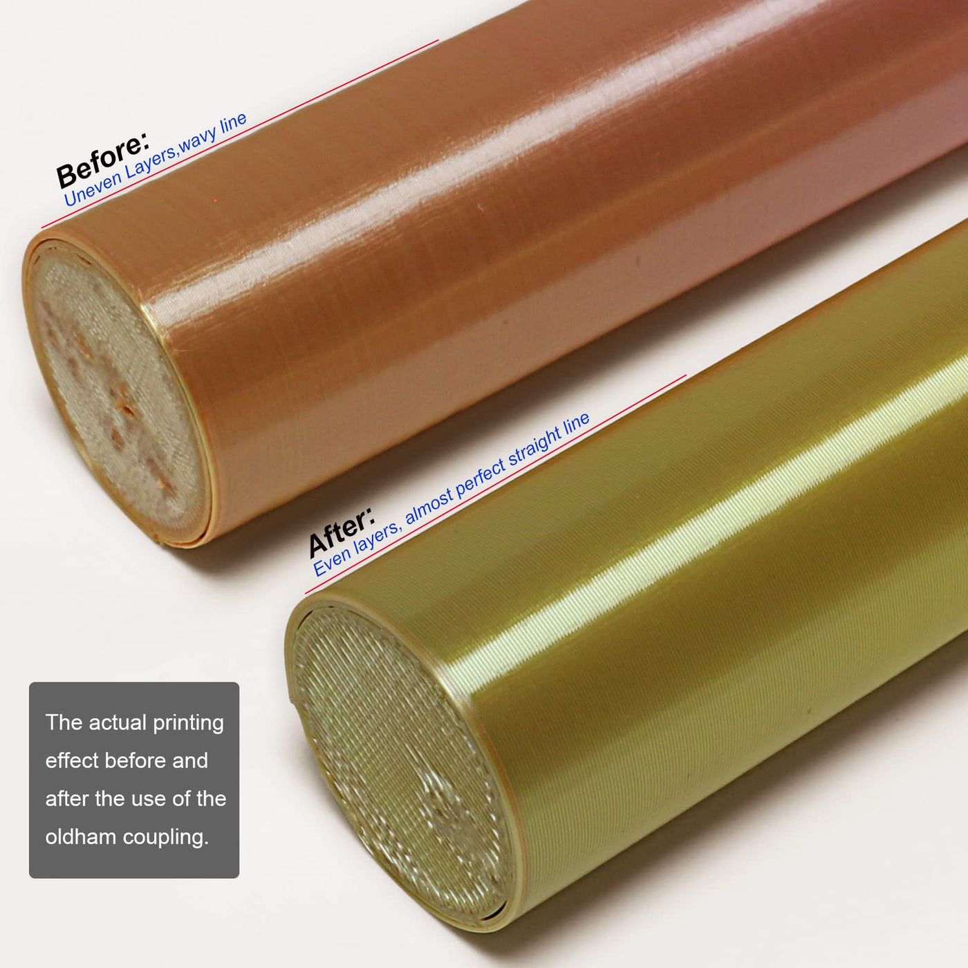 Q: How does the Oldham coupling improve printing accuracy?A: The Oldham coupling reduces vibrations caused by the bending of the lead screw, which helps to prevent layer misalignment and enhances overall printing accuracy.