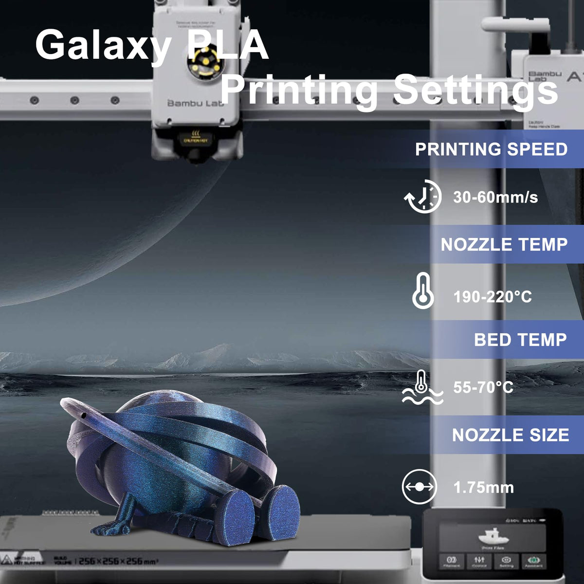 Eryone Glitter Pla Filament For 3D Printer, 1.75Mm +/ 0.03Mm, 1Kg(2.2Lbs)/Spool, Sirius Nebula (Blue)