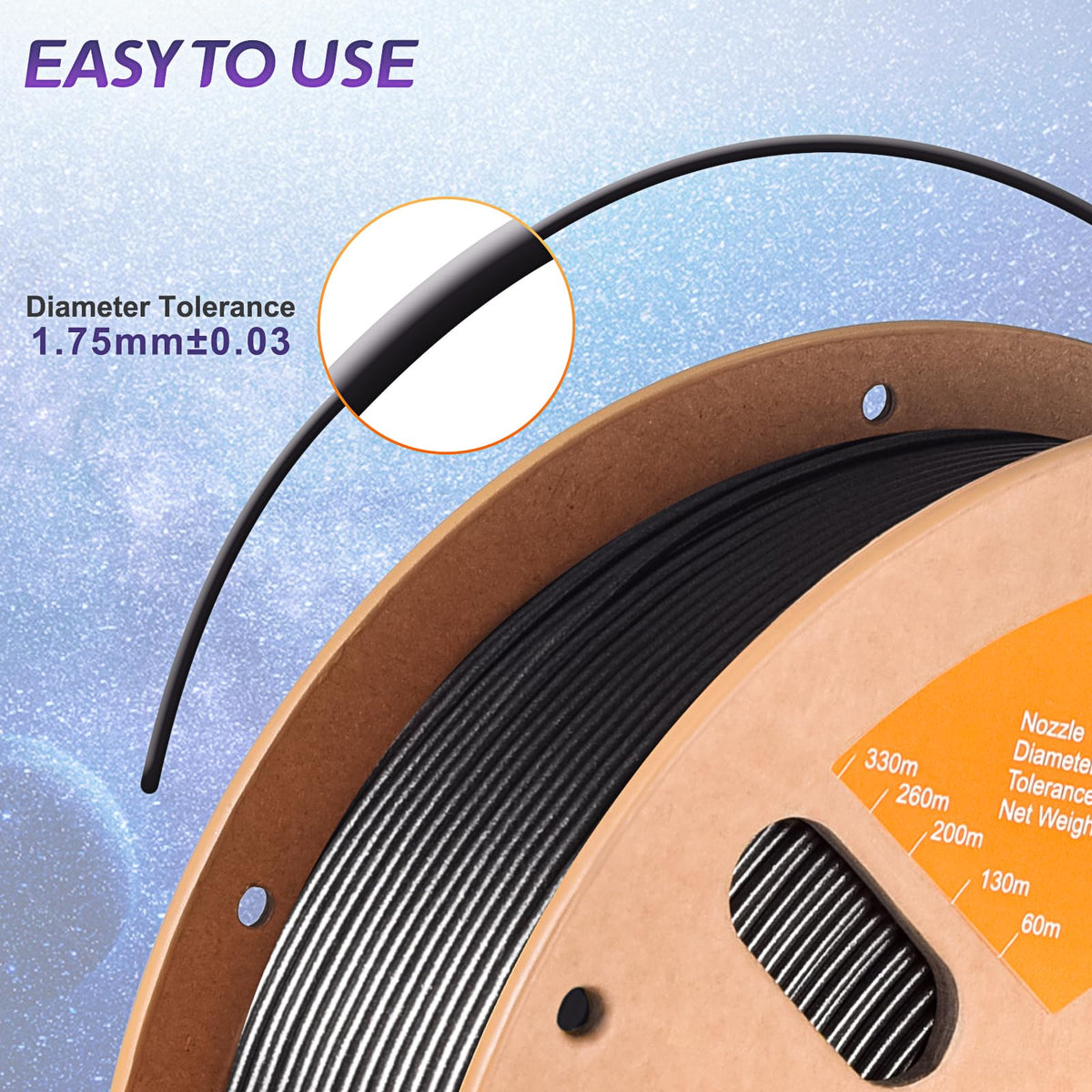 Eryone Sparkly Glitter Shining Pla Filament For 3D Printer, 1.75Mm, Tolerance: 0.03Mm, 1Kg(2.2Lbs)/Spool, Black