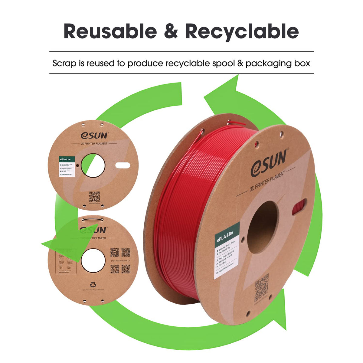 Q: Is eSUN PLA Filament environmentally friendly?A: Absolutely. eSUN Upgraded PLA Filament is made from starch raw materials derived from renewable plant resources, making it environmentally friendly and recyclable. Additionally, the packaging includes a recyclable paper spool and comes in a sealed vacuum bag for optimal storage.