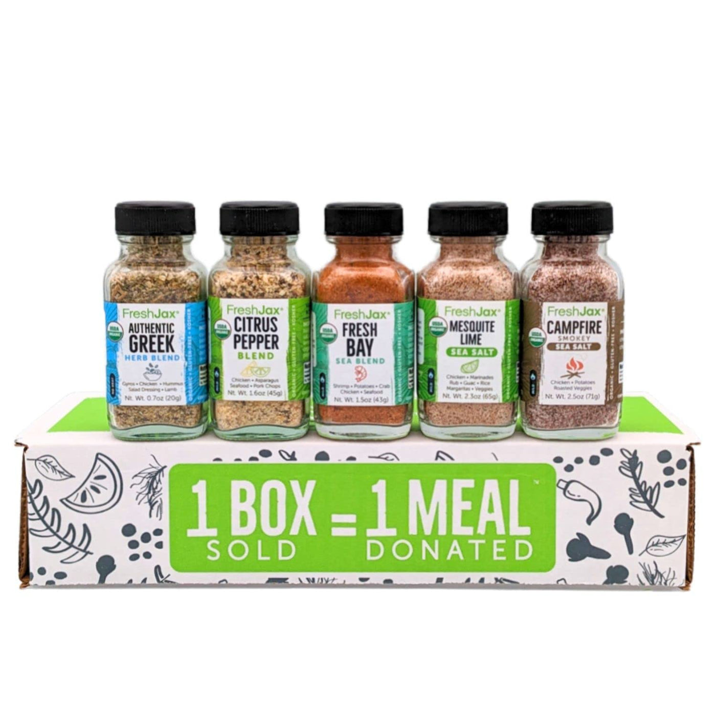 Q: What makes the FreshJax seasonings different from other spice brands?A: FreshJax seasonings stand out due to their commitment to organic ingredients, unique flavor blends, and the mission to fight childhood hunger, where each purchase contributes to providing meals for children in need.
