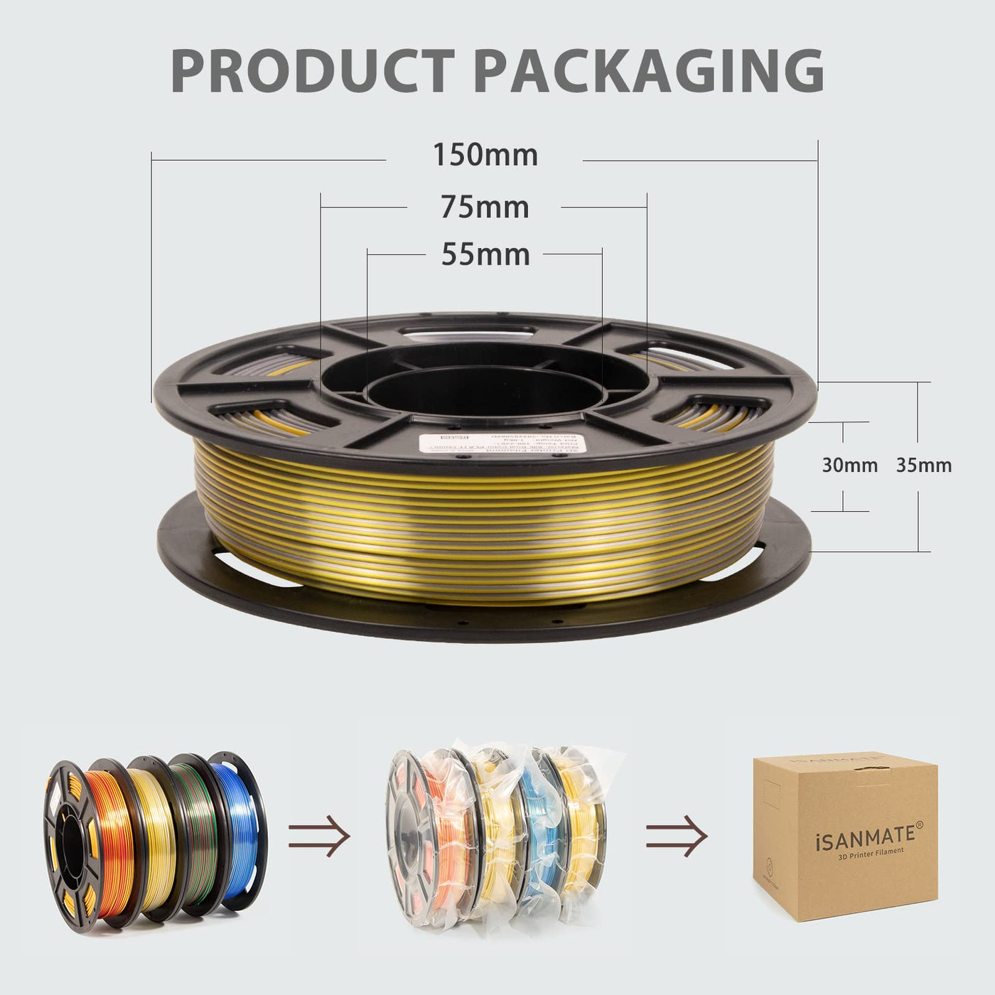 Isanmate 3D Printer Filament, Pla Filament 1.75Mm Bundle, Dual Color Filament Silk Pla, Dimensional Accuracy +/ 0.03 Mm, 250G X