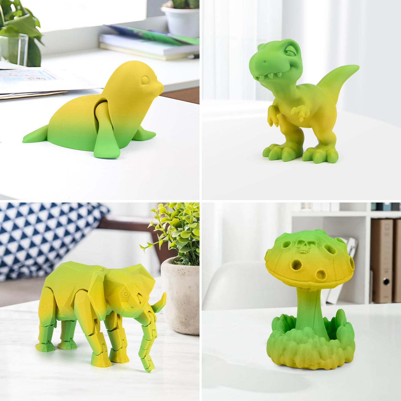 Isanmate Pla+ Filament, 3D Printer Filament Matte Gradient Multicolors Filament, Color Change Rainbow Filament, Yellow, Green Fi