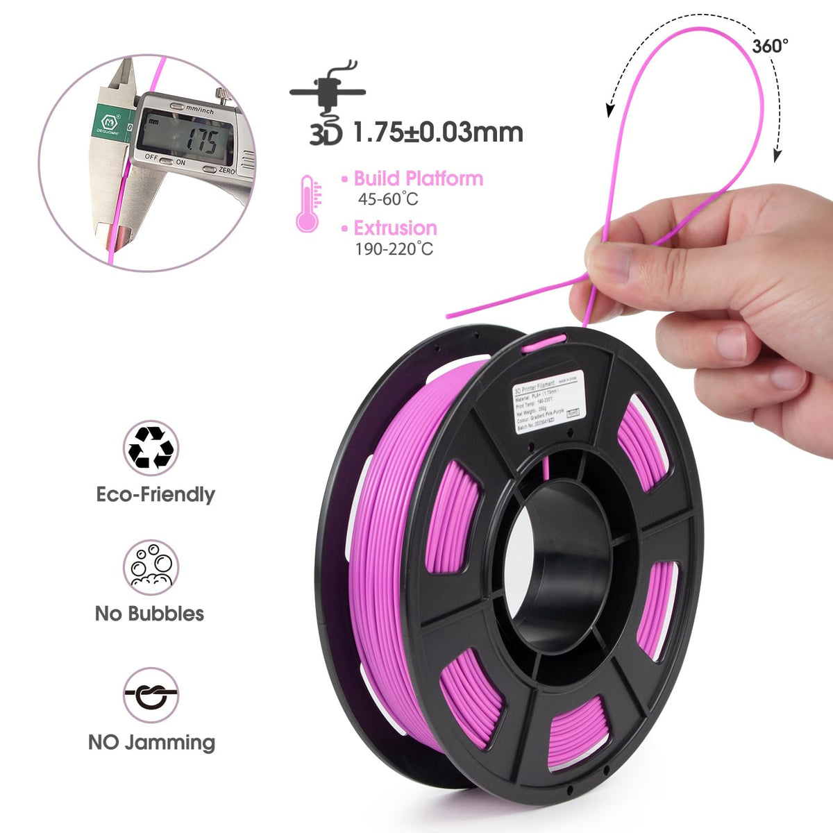 Q: What are the recommended printing temperatures for iSANMATE PLA+ Filament?A: The recommended printing temperature for iSANMATE PLA+ Filament is around 200℃, with a range from 190 to 220℃.