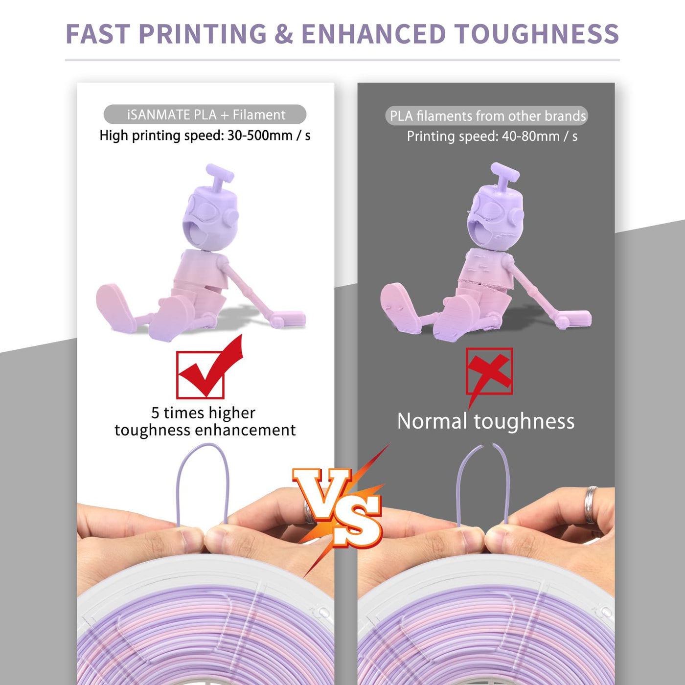 Q: What are the benefits of using iSANMATE PLA Plus filament compared to regular PLA?A: iSANMATE PLA Plus filament offers enhanced layer bonding strength, greater impact resistance, and improved toughness compared to conventional PLA, making it ideal for durable prints.