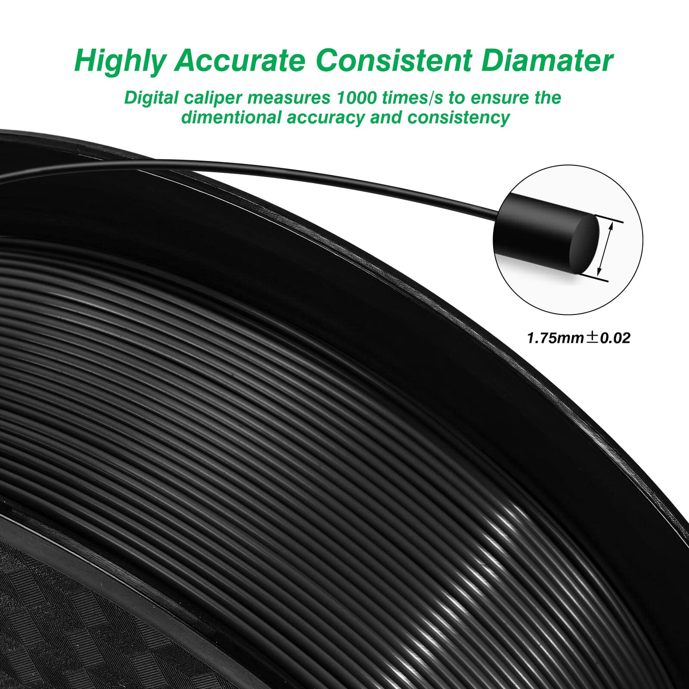Q: What is the dimensional accuracy of Kingroon PLA 3D printer filament?A: The Kingroon PLA 3D printer filament offers a dimensional accuracy of +/- 0.03 mm, ensuring precise and consistent printing results for your projects.