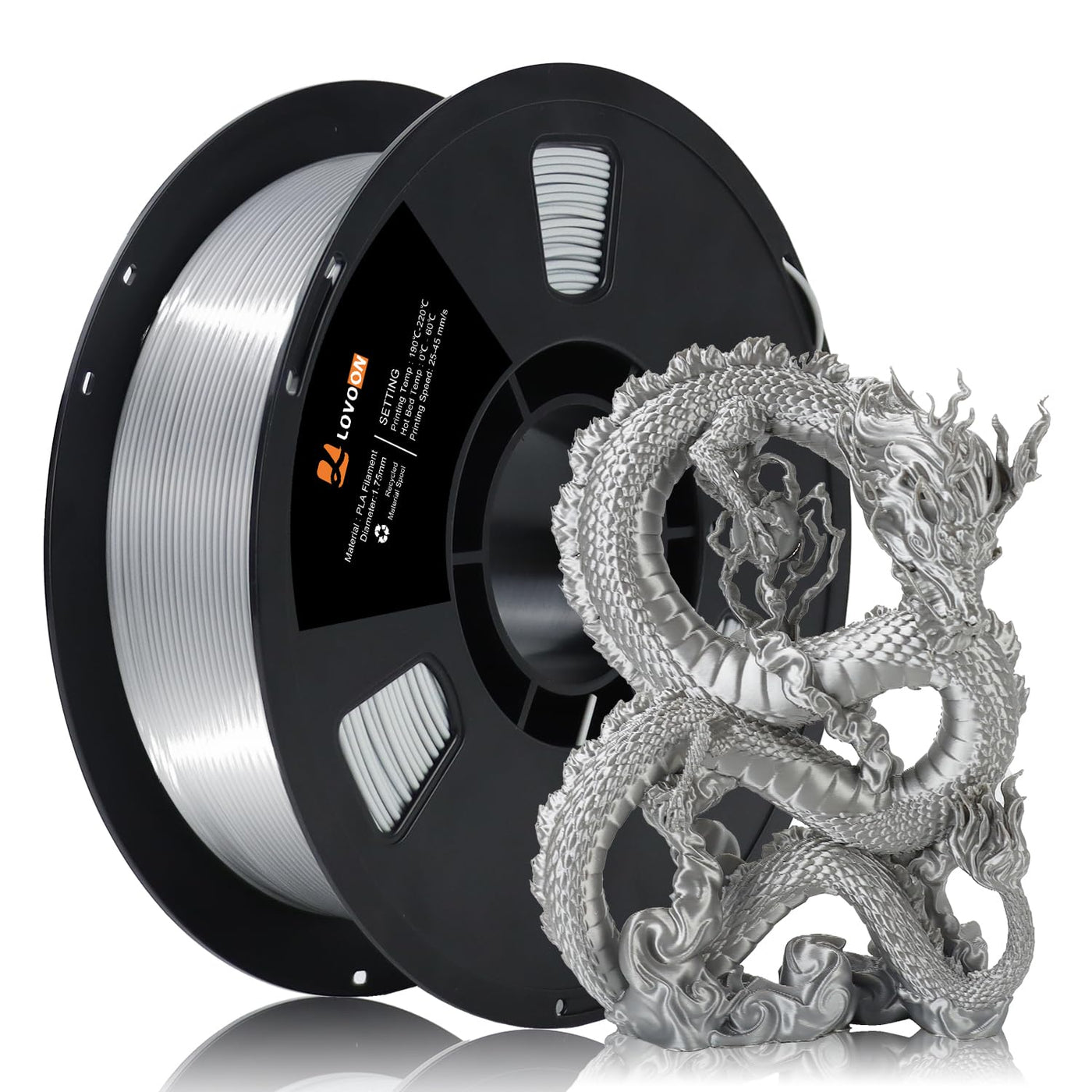 Lovoon 3D Printer Filament Silk Silver, Pla Filament 1.75Mm Shiny Silk Silver, Silky Silver Pla Surface, Easy To Print For 3D Pr