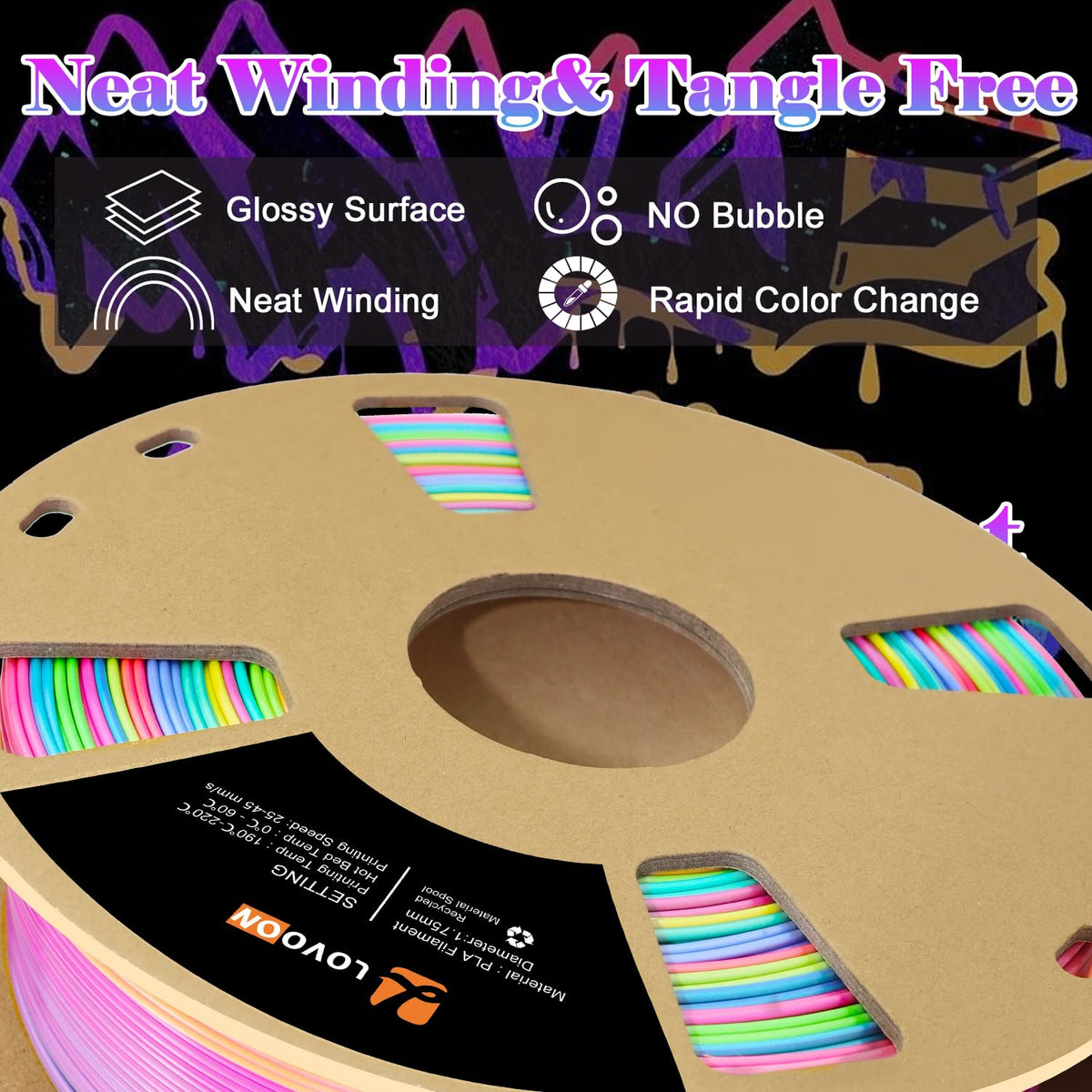 Lovoon Silk Pla 3D Printer Filament, Shiny Rainbow Pla Filament 1.75Mm, Color Change By Length Pla 3D Printing Filament, Multico