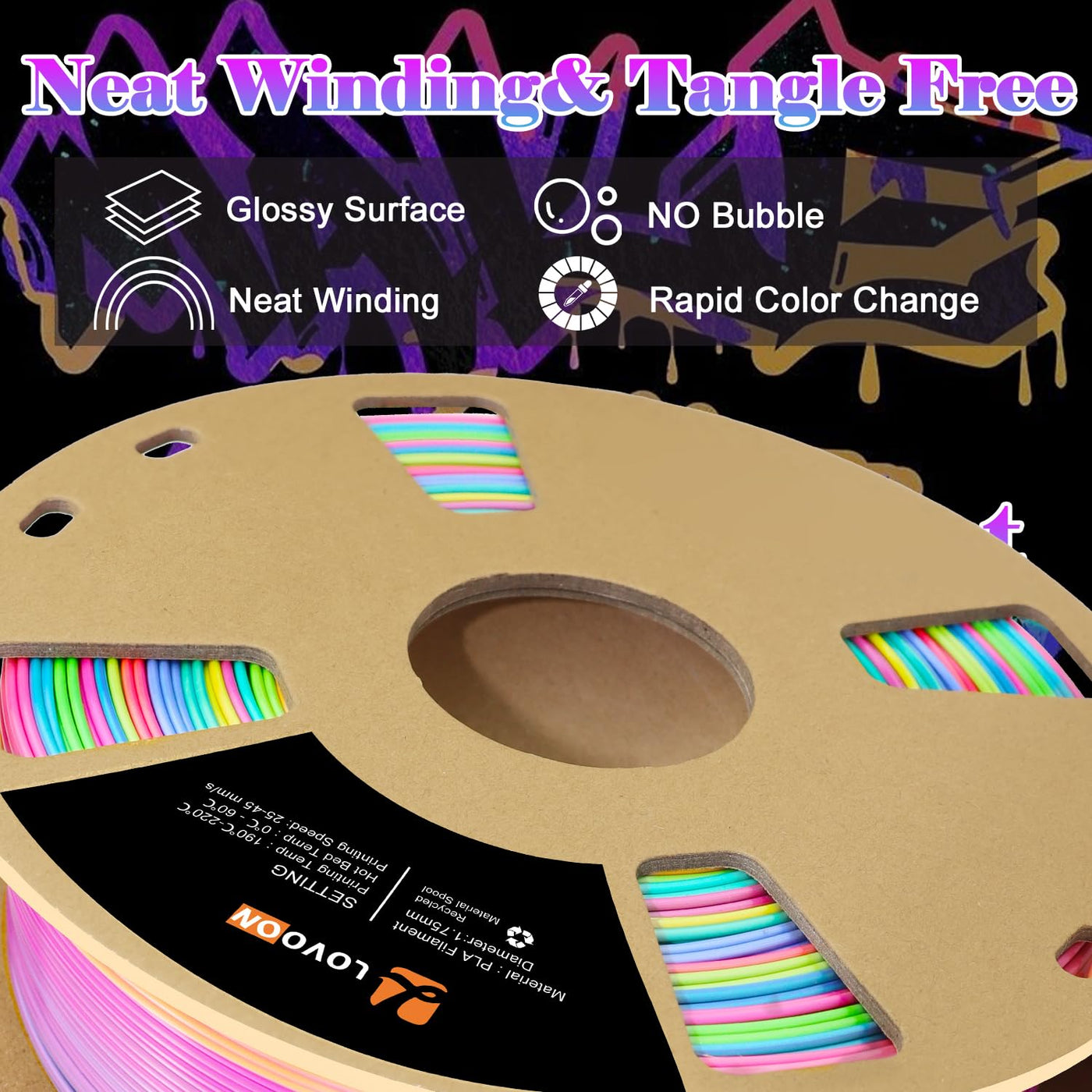 Lovoon Silk Pla 3D Printer Filament, Shiny Rainbow Pla Filament 1.75Mm, Fast Color Change Pla 3D Printing Filament,Multicolor Shift Green-Blue-Purple-Pink-Yellow, 1Kg (2.2Lbs)