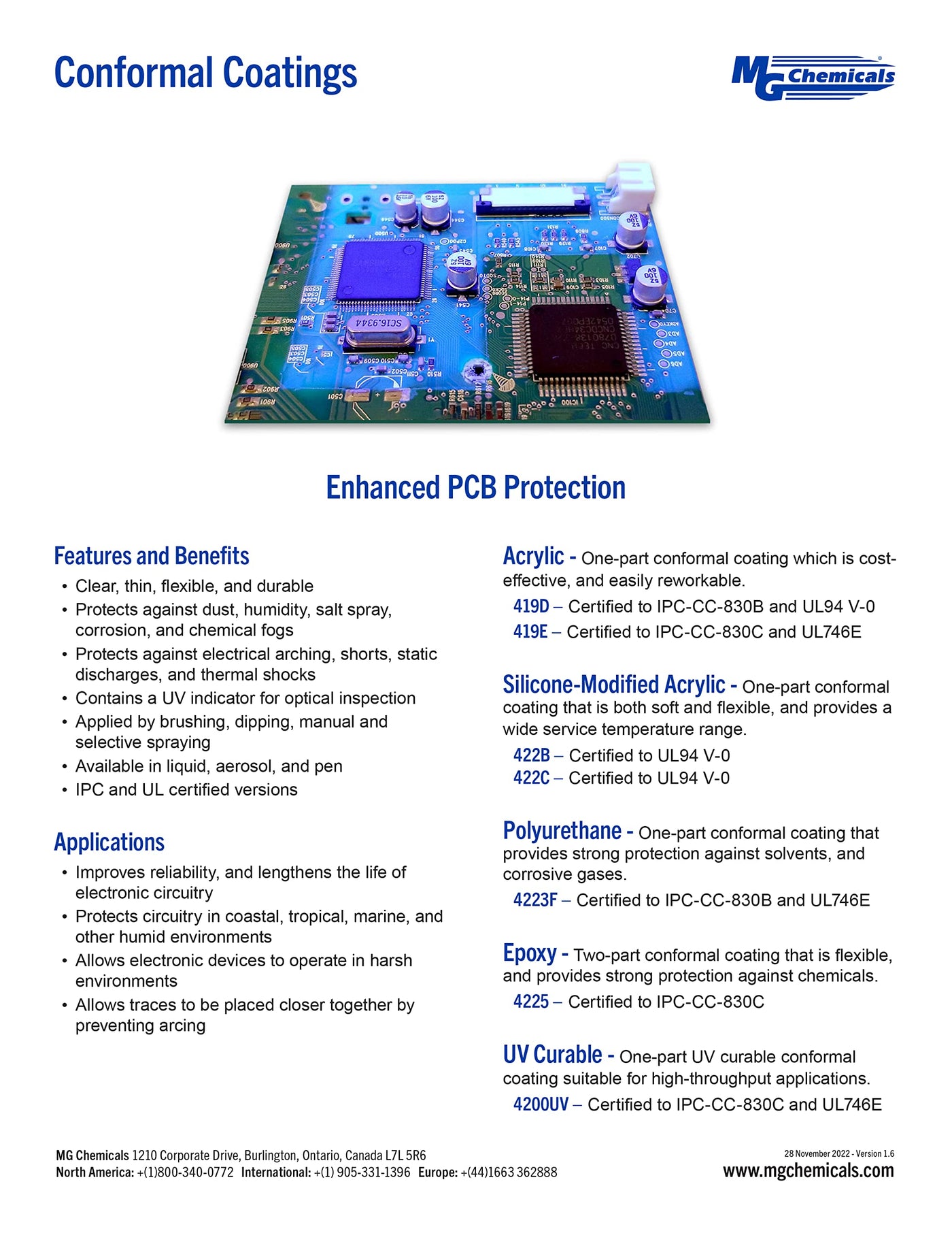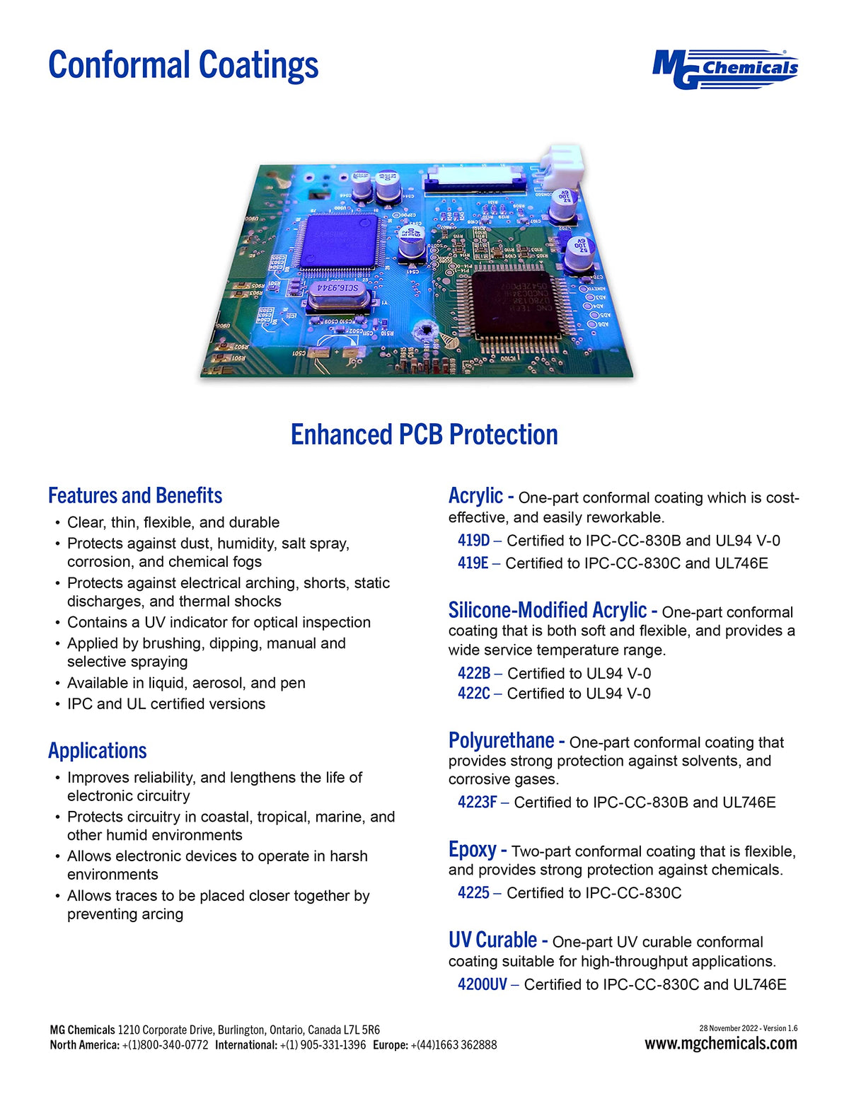 Q: Does the coating fluoresce under UV light?A: Yes, the MG Chemicals 422C silicone conformal coating fluoresces under UV-A light, which can be useful for inspection and quality control.