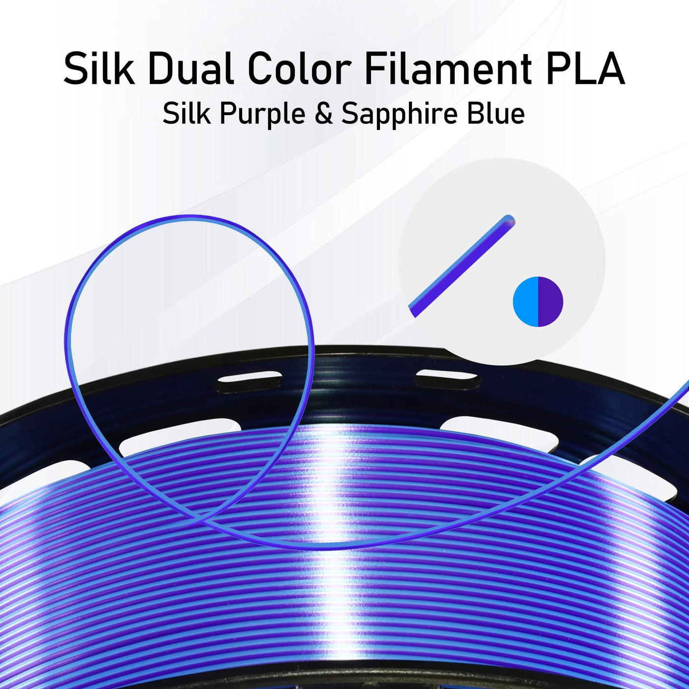 Mika3D 1.75Mm 2 Colors In 1 Silk Purple Blue Pla 3D Filament, 1Kg 2.2Lbs 3D Printing Material With Bicolor Dichromatic Double Co