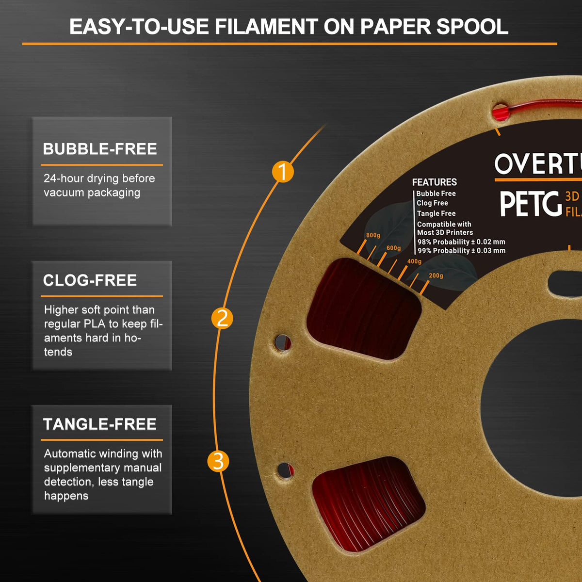 Overture 3D Filament Clear Petg Filament 1.75Mm, Petg Transparent Red 3D Printer Consumables, 1Kg Filament (2.2Lbs), Dimensional