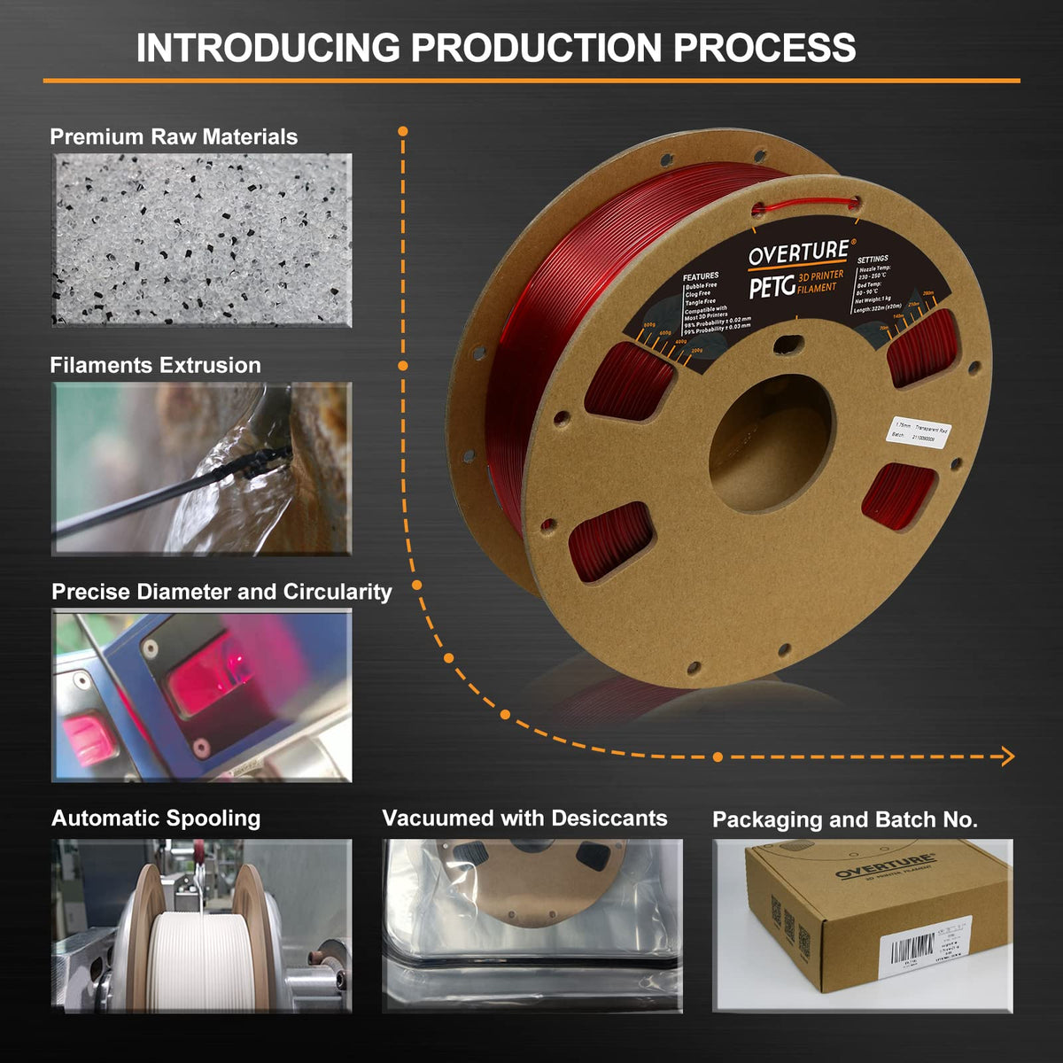 Petg Filaments Are Made Of Premium Petg Plastic Which Combines The Advantages Of Other Filaments Such As Safe And Odorless Little Shrinkage Rate High Impact Strength And Good Liquidity (Flows Smoothly) Furthermore, This Beautiful Petg Filaments Make Prints Come Out With A Little Shine Or Spark To Itbuy With Confidence, 100% Satisfaction Guarantee E-Mail Us If You Have Any Issues Or Questions, We Will Make Every Effort To Provide You With Immediate Help Until You Are Satisfiedfaqs:Why Cant The Filaments Stick To The Build Bed1 Check The Temperature Setting Before Printing, Petg Filaments Have Higher Extrusion Temperature Than That Of Pla2 Check If The Plate Surface Has Been Used For A Long Time, It Is Recommended To Replace It With Our New One To Ensure A Strong First Layer Adhesion3 If The First Layer Has Poor Adhesion, It Is Recommended To Re-Level The Print Substrate To Reduce The Distance Between The Nozzle And The Surface Plate4 If The Effect Is Not Good, It Is Recommended To Try Printing The Draft Before Printingspecification:&Nbsptemperature&Nbsprecommended Extrusionnozzle Temp: 230Ac - 250Ac (446 482)Heated Bed Temp: 80Ac - 90Ac (176 194)Filaments Diameter And Accuracy: 175 Mm +- 005Filaments Net Weight: 6 Kg (132 Lbs)&Nbsprecommended Printing Conditions:Cooling Fan: Turned Onprinting Speed: 3050(Mms)Raft Separation Distance: 014(Mm)Retraction Distance: 13 Mm(Note:Based On 04 Mm Nozzle And Simplify 3D V 40 Printing Conditions May Vary With Different Nozzle Diameters)Packaging Included:1 A Spool Of Petg Filaments&Nbsp