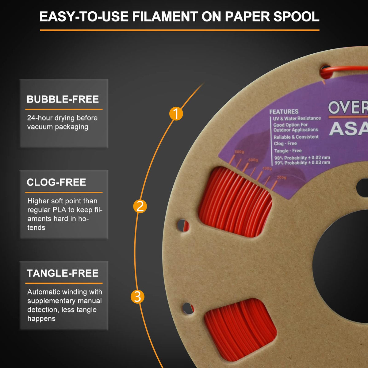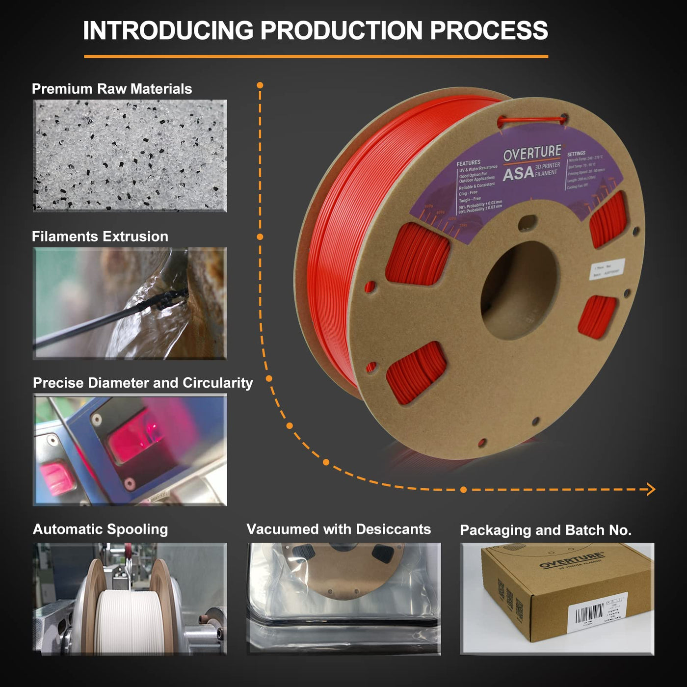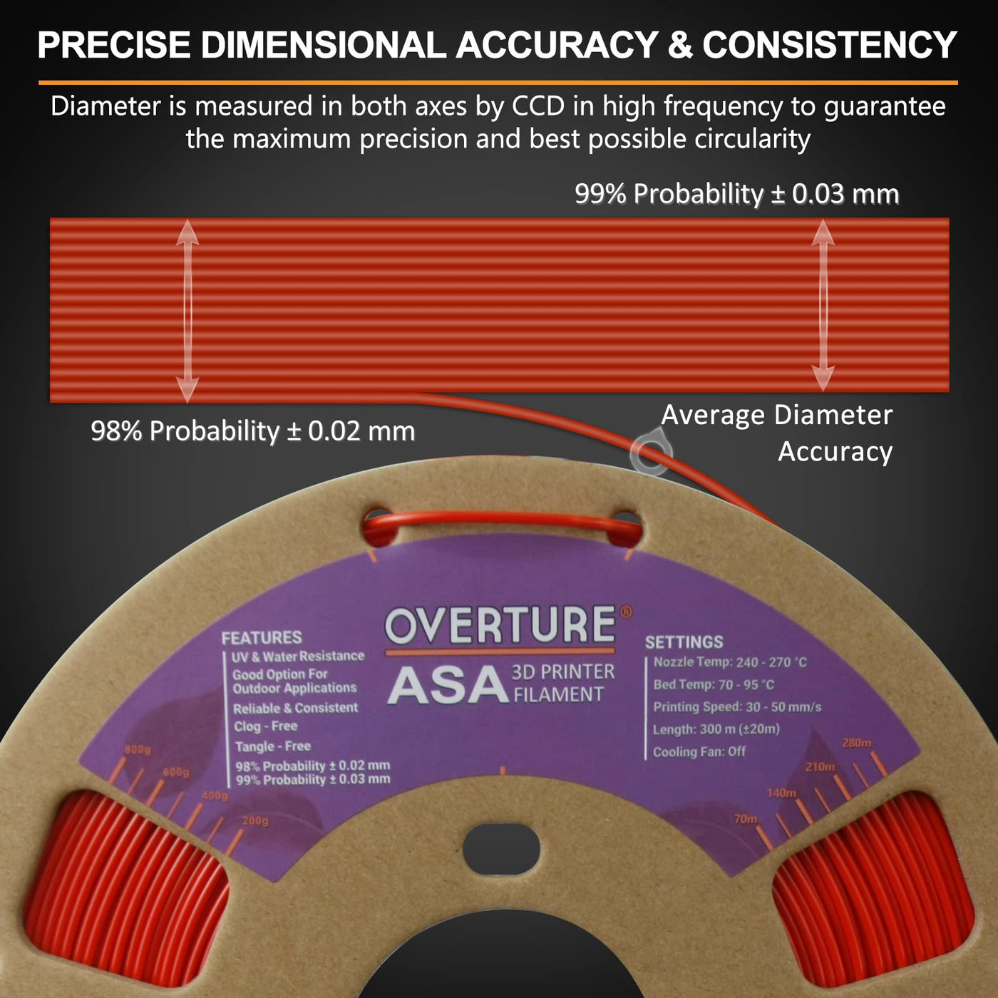 Overture Asa Filament 1.75Mm Premium Anti Uv 3D Printer Filament, 1Kg Spool (2.2Lbs), Dimensional Accuracy +/ 0.03 Mm, Fit Most