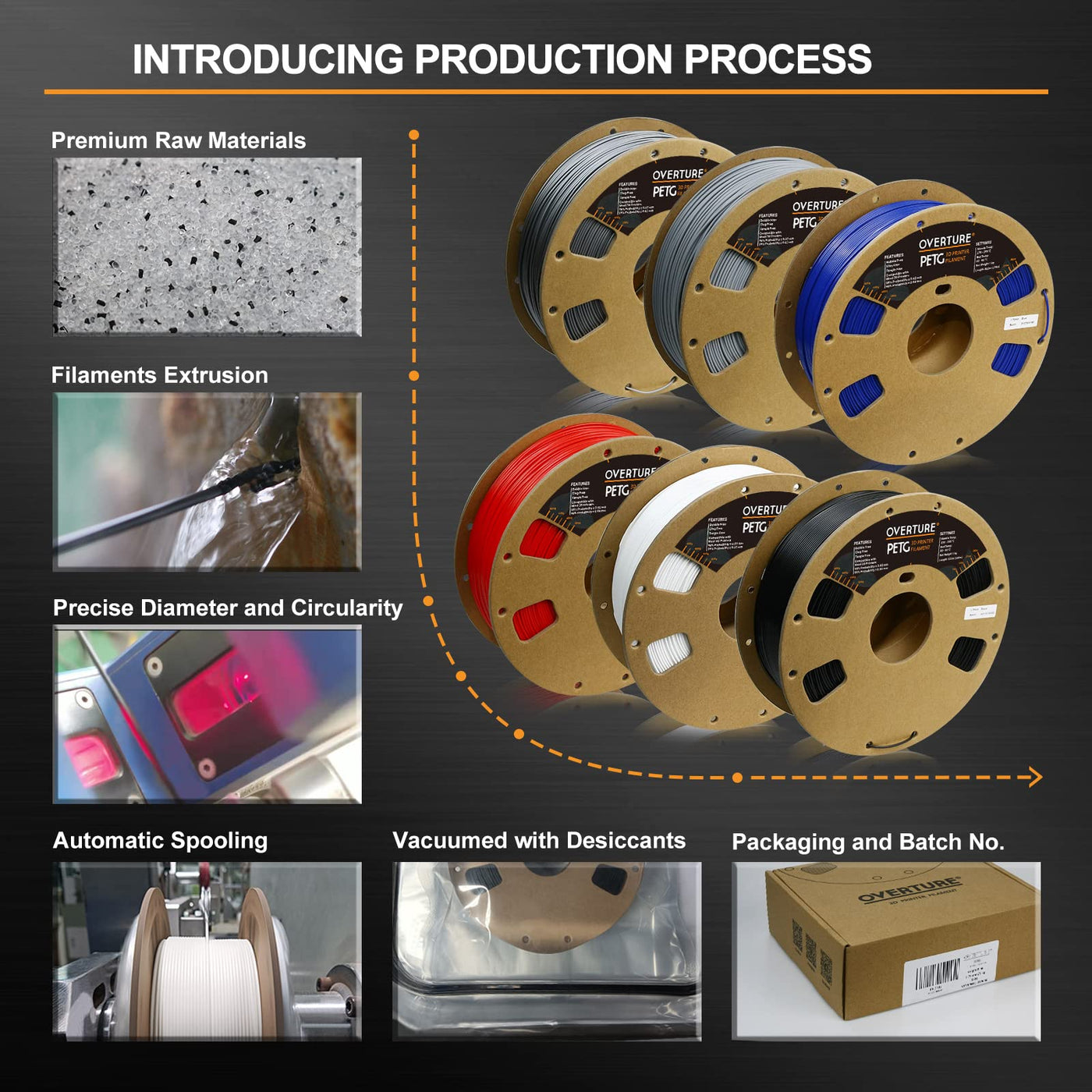 Q: How should I store OVERTURE PETG filament to maintain its quality?A: To maintain the quality of OVERTURE PETG filament, store it in a cool, dry place and keep it sealed in its re-sealable aluminum foil bag after use. This helps protect it from moisture, which can negatively affect printing performance.