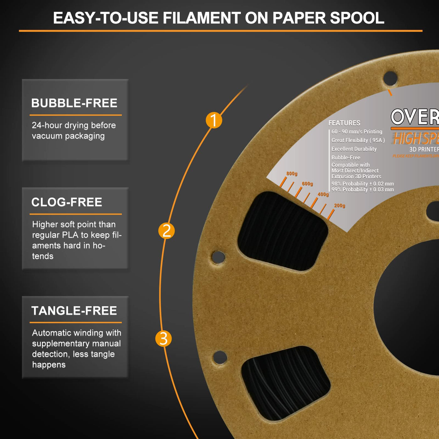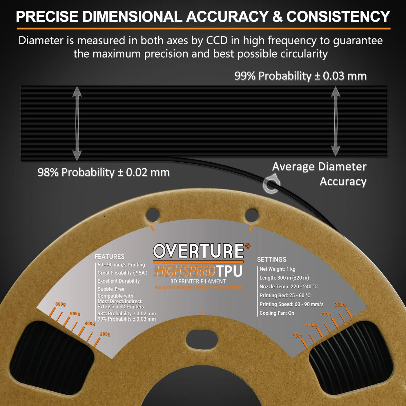 Overture Tpu High Speed Filament 1.75Mm Flexible Tpu Roll, 3D Printer Filament,Dimensional Accuracy +/ 0.03 Mm, Fit Most Fdm Pr