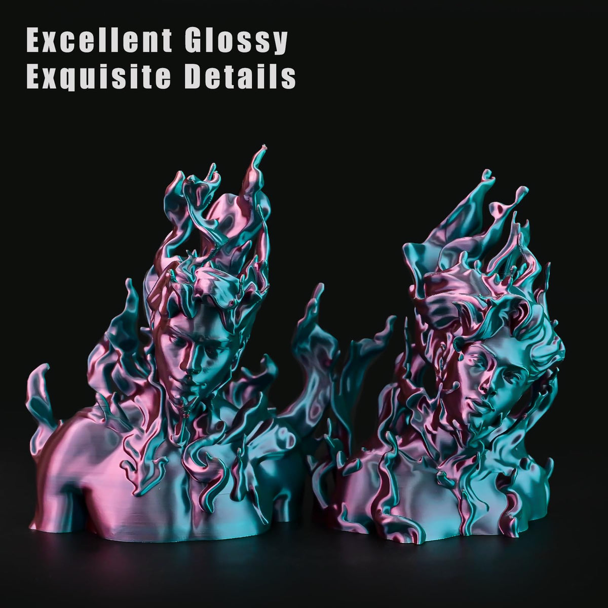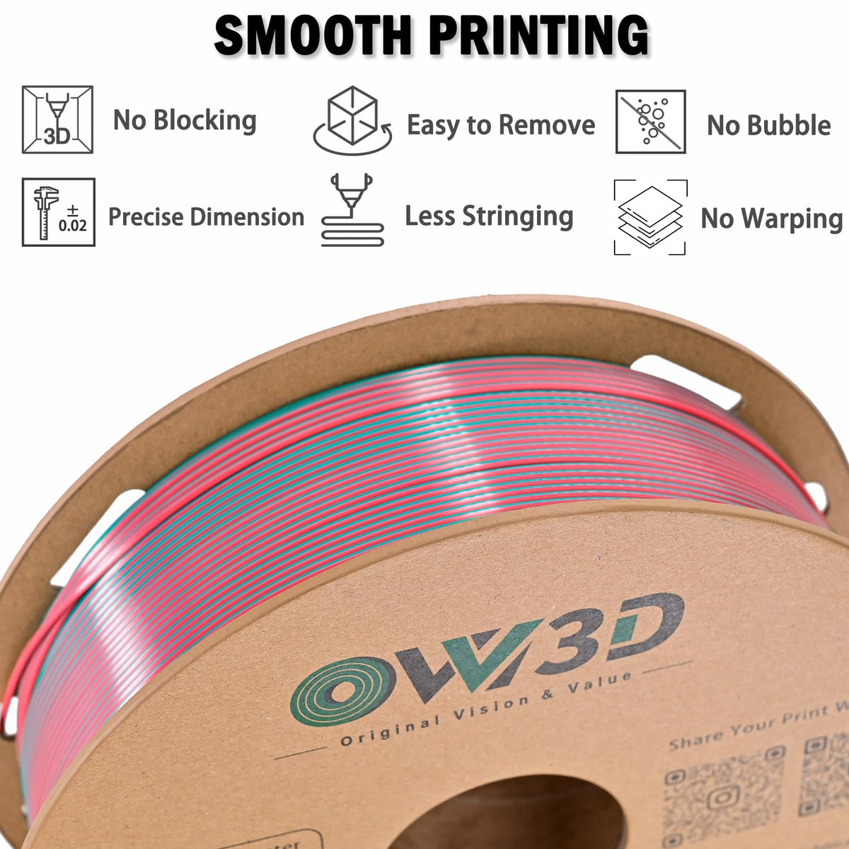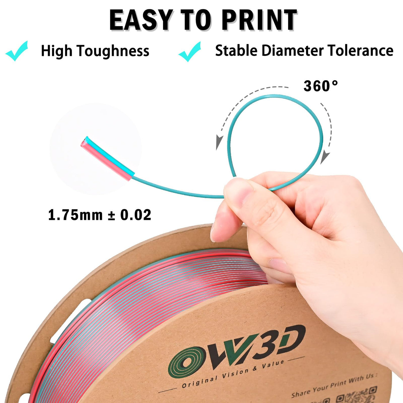 ?Dual Color Pla Filament?Different From Normal Color Change Rainbow Pla Filament, Every Inch Of This Magic 3D Filament Is Made Of 2 Colors-Sky Blue And Pink. Therefore, You Will Easily Get All Colors, Even For Very Small Prints. Different Prints Will Present Different Effects. Enjoy Your 3D Printing Creations. | ?Silk Pla Filament?We Specialize In Silk Pla Filament So That The Surface Of This Dual Color Black Red 3D Printing Filament Is Also Very Smooth And Shiny. What You 3D Printing Out Will Be As Glossy As In The Pictures, No Exaggeration. | ?Easy To Print? The Diameter Tolerance Of This 1.75 Pla Filament Is +/- 0.03Mm. More Stable Diameter Tolerance Of 3D Printer Filament Would Give You Smoother 3D Printing Experience. High Toughness Pla Filament 1.75Mm Cause You Have Room For 3D Printing Imagination. | ?Pla Plus Raw Material? The Raw Material Comes From Europe, And It Has Been Developed And Modulated To Show A Outstanding Print Quality On The Pla. No Jamming, No Bubble, No Tangle, And No Layer Line, Just Perfect Red Black Pla Filament. | ?Perfect Winding? Using The Latest Intelligent Winding Machine And Strict Manual Inspection Procedures To Ensure That Each Roll Of Pla Filament Is Neat And Tidy. We Pay Attention To Every Detail Of Our 3D Printer Filament To Provide High Quality 3D Printing.