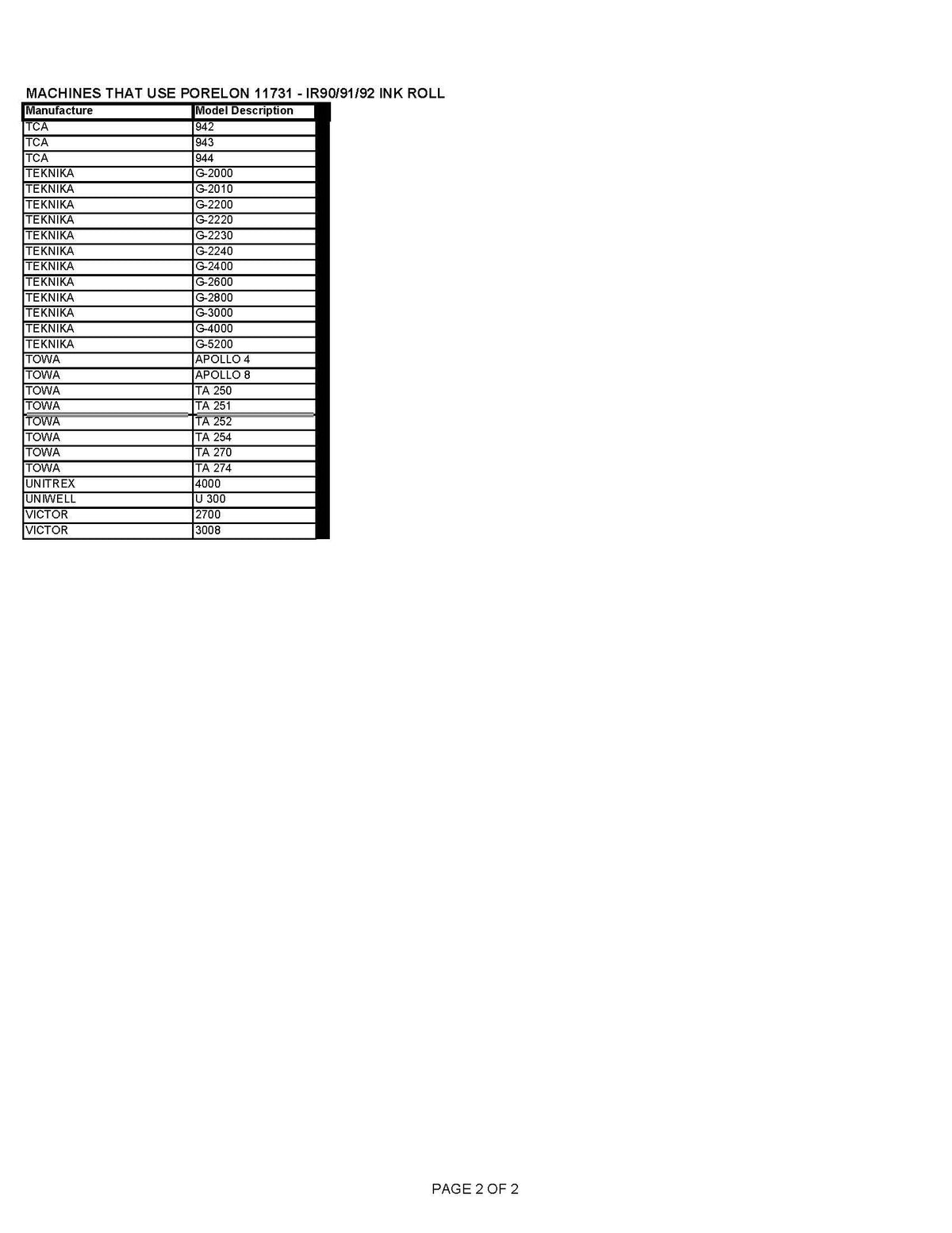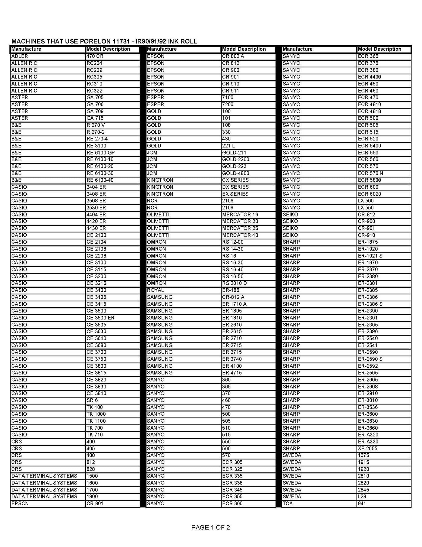 The Porelon Ir90/91/92 Compatible Cash Register/Pos Ink Roll Replaces Manufactures Part #'S Er-9091R, 199270 And 013116. This Ink Roll Provides Vivid And Consistent Purple Color In Addition To Exceptional Light Fastness And Durable Impressions. This Product Has Been Designed And Manufactured To Operate The Original Equipment Identified. 1 Pack. Porelon Specializes In Creating Inking Products And Elastomers For A Wide Variety Of Industries. They Focus Their Scientific, Engineering And Customer Service Efforts On Delivering Solutions That Perform To Your Exact Specifications.