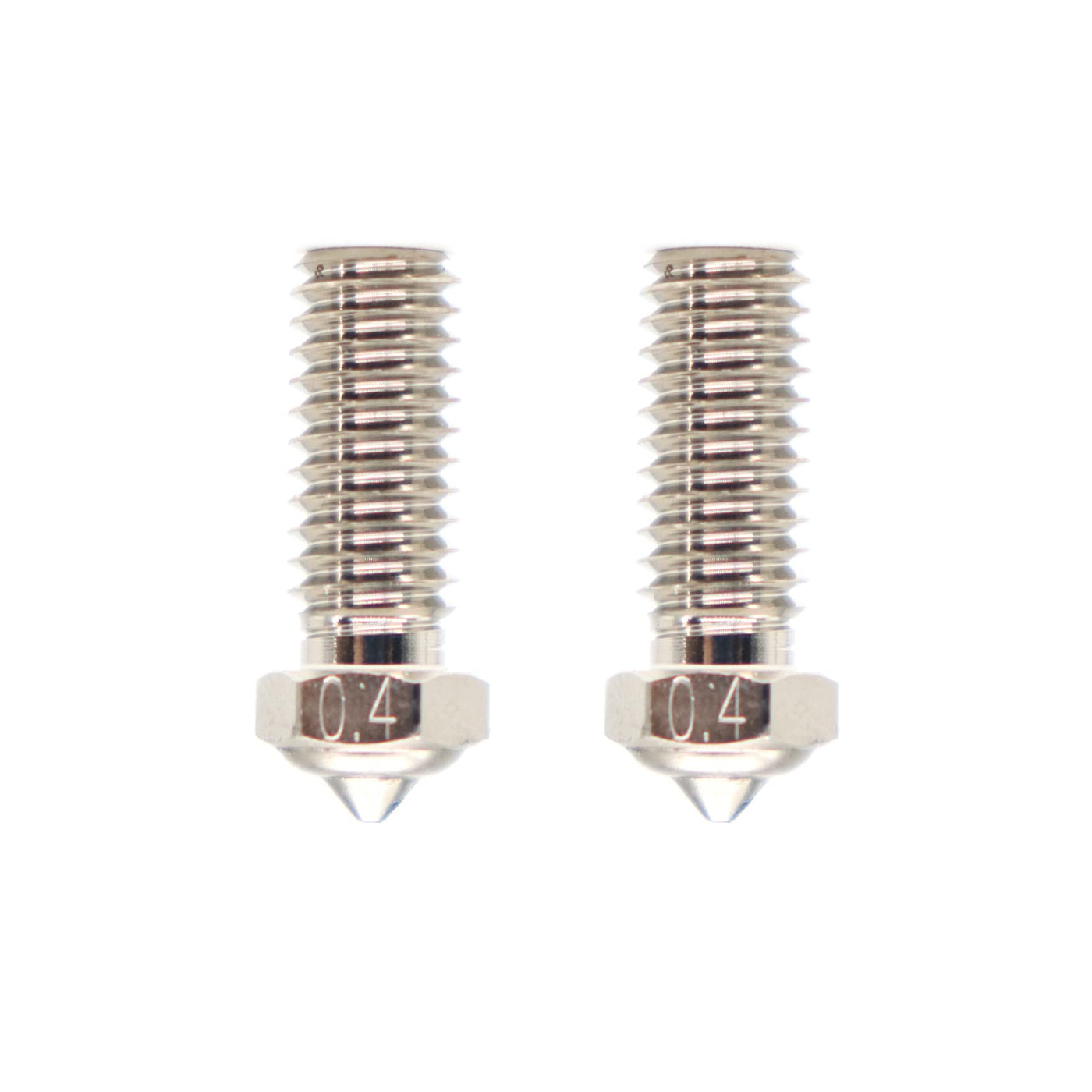 Q: What is the size of the extruder nozzles?A: These extruder nozzles have a diameter of 0.4 mm, which is ideal for fine detail printing and producing high-quality 3D models.