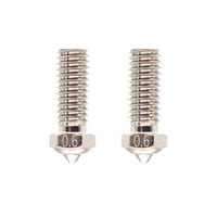 Q: How do I install the 0.6 mm nozzles on my 3D printer?A: To install the 0.6 mm nozzles, first heat the extruder to the appropriate temperature for the material you're using, then unscrew the existing nozzle and replace it with the new copper plated nozzle, ensuring a tight fit to prevent leaks.