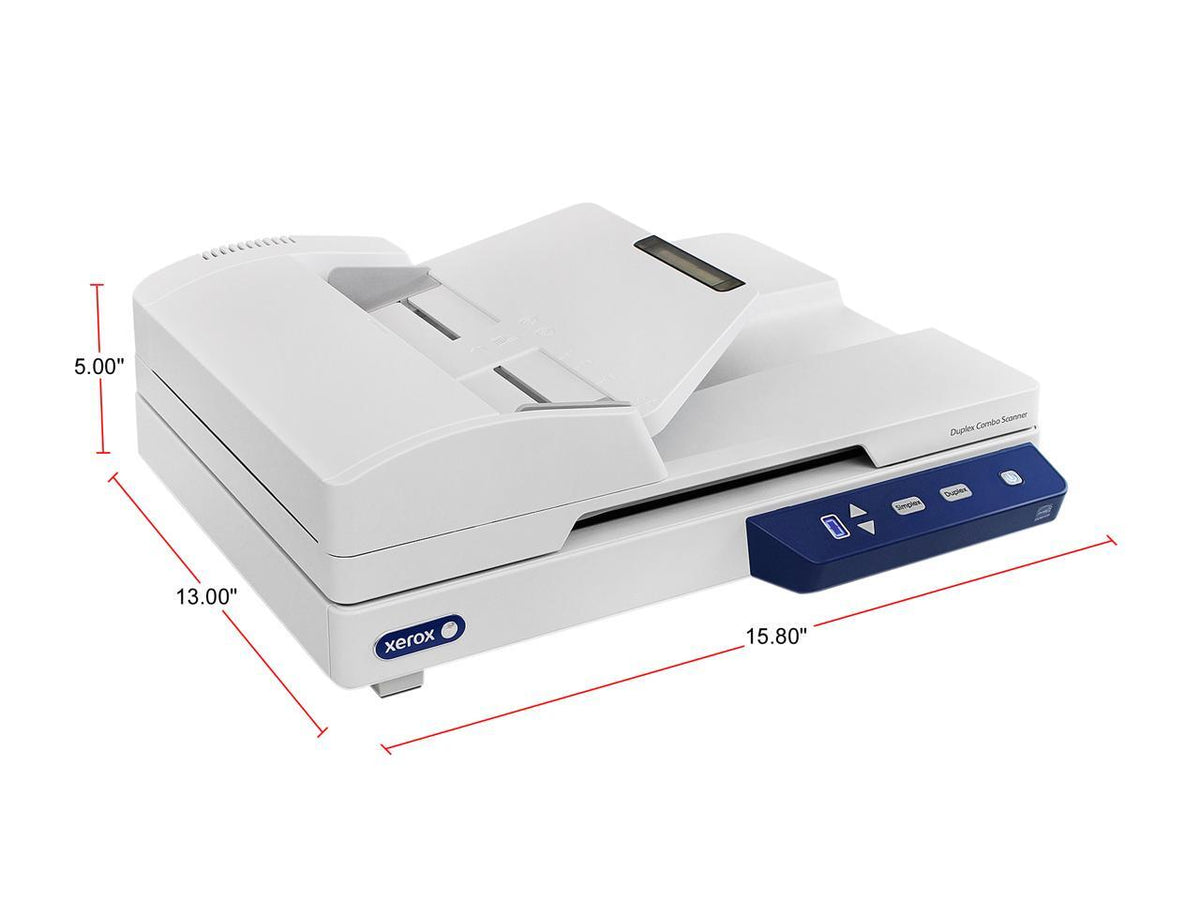 Q: How fast does the Xerox Duplex Combo scanner operate?A: This scanner can scan at impressive speeds of up to 30 pages per minute (ppm) and 60 images per minute (ipm) in duplex mode, allowing for quick and efficient document processing.