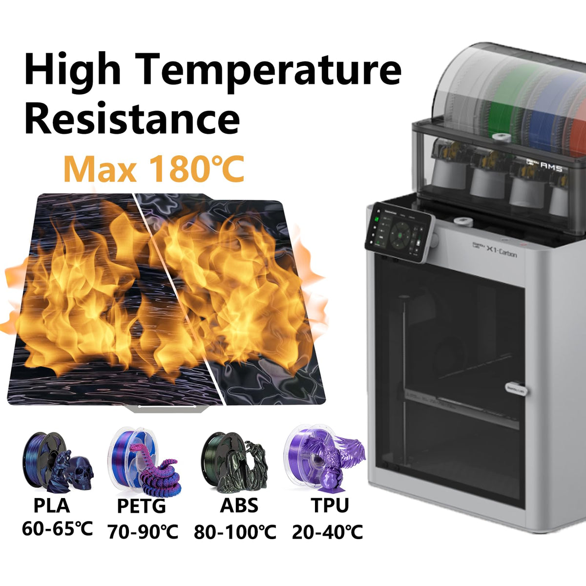 Smooth Water Ripples+Wood Grain 3D Printer Build Plate For Bambu Labs X1 X1C X1E P1P P1S A1, Double Sided Flexible Sheet Spring Steel Plate 257X257Mm For Bambulab 3D Printer Platform