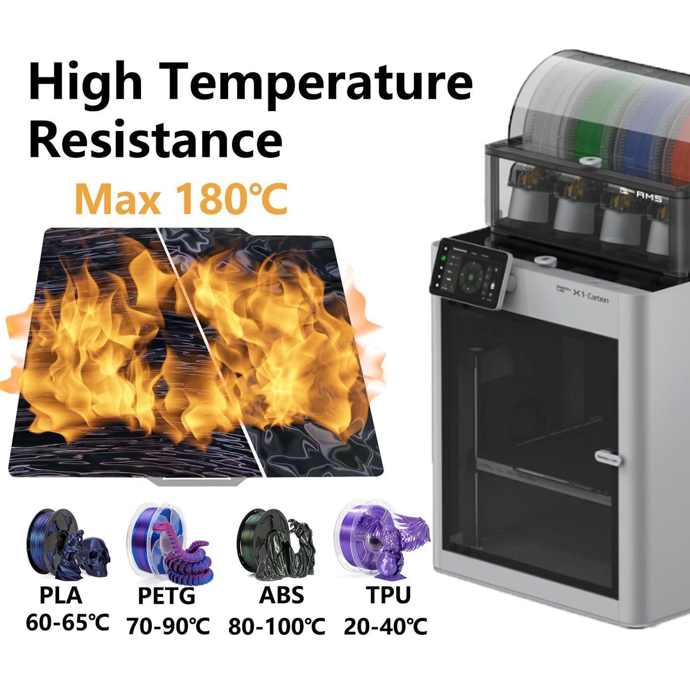 Smooth Water Ripples+Wood Grain 3D Printer Build Plate For Bambu Labs X1 X1C X1E P1P P1S A1, Double Sided Flexible Sheet Spring