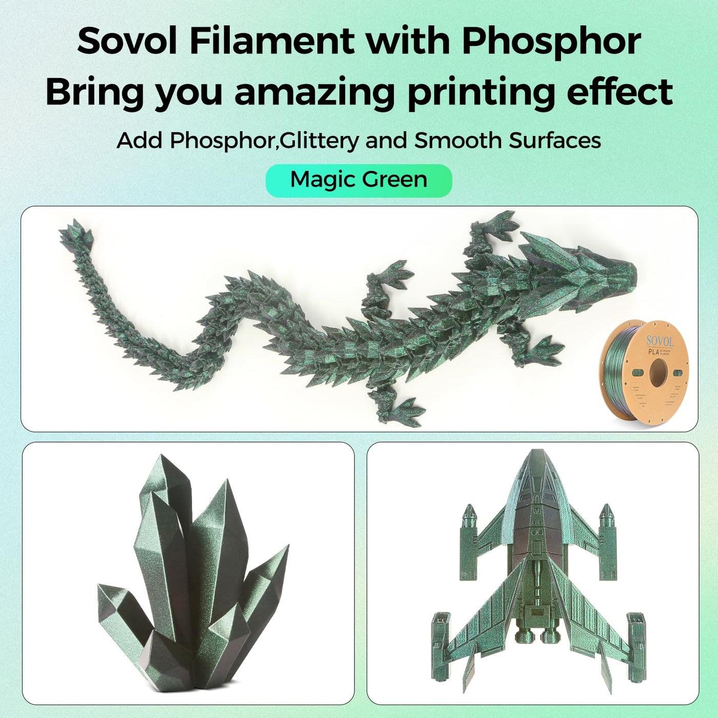 Sovol Silk Pla Filament With Green Glitter 1Kg 1.75Mm, Color Changeable 3D Printer Filament 2.2Lbs, Chameleon Shiny Pla Material