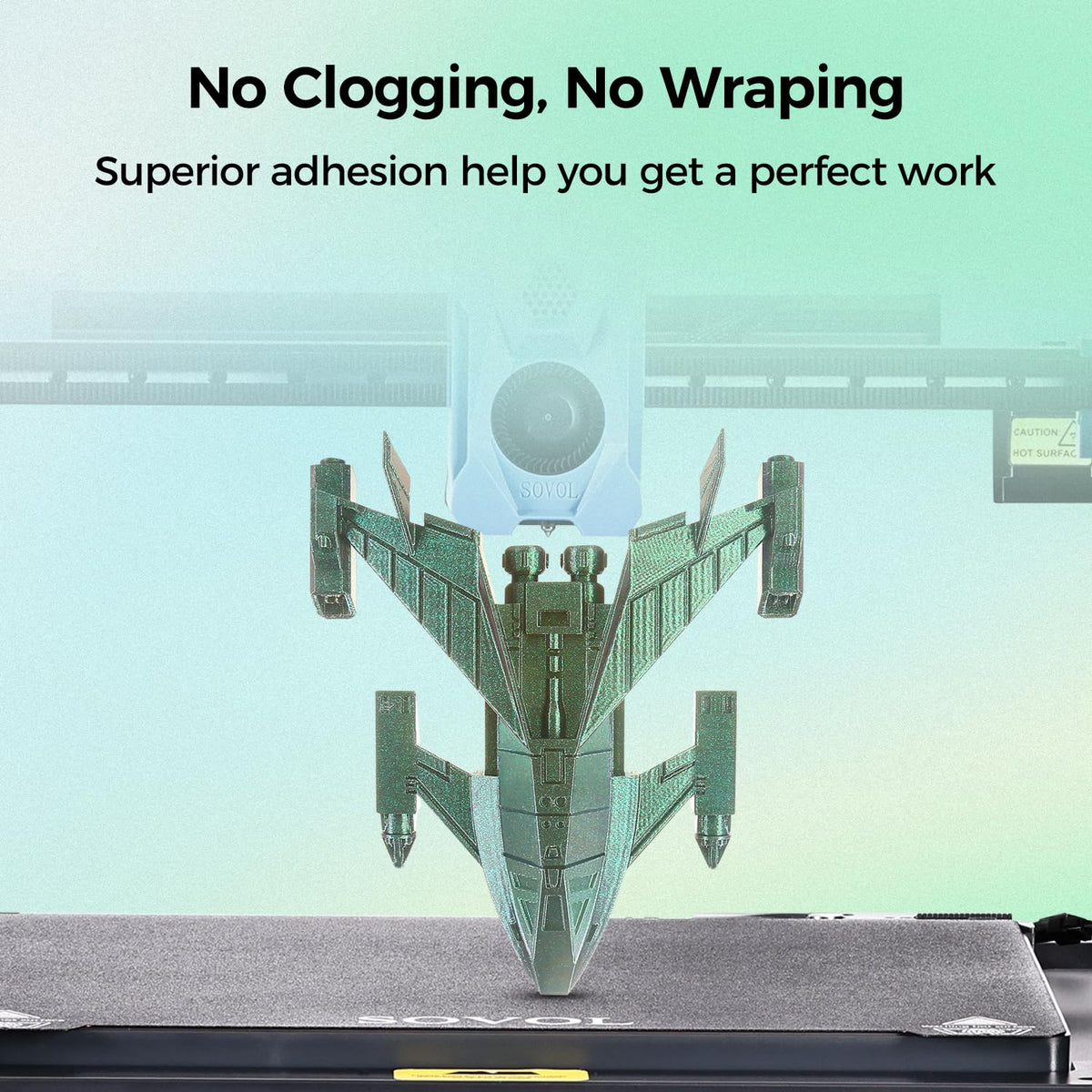Q: What is the unique feature of the Sovol Silk PLA Filament?A: The Sovol Silk PLA Filament is a shiny chameleon material that changes color based on different lighting and viewing angles, allowing for stunning visual effects in your 3D prints.