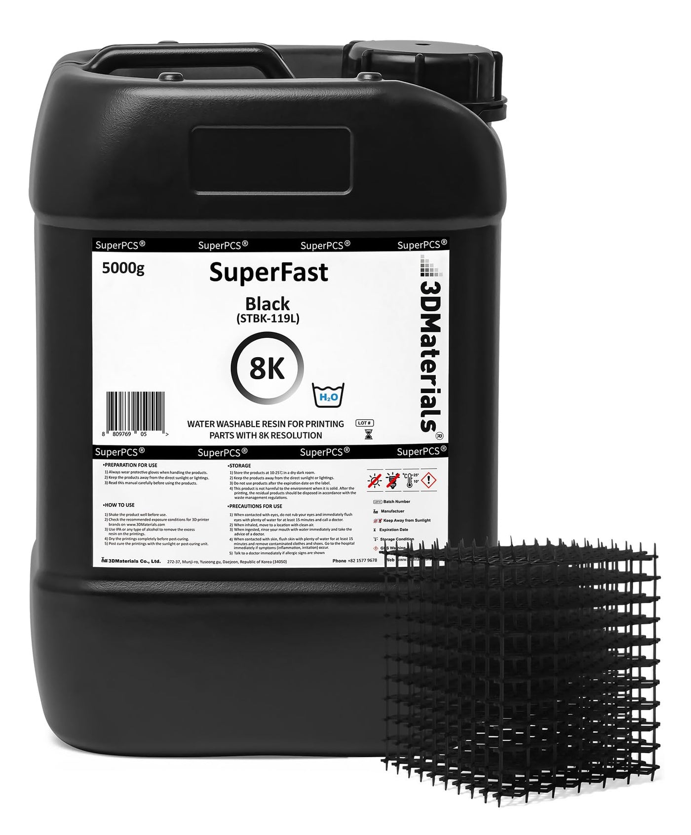 Fast Printing] Unique Photosensitization Technology Developed By 3Dmaterials Allow For Curing 50Um Layer In 05 Sec With Monochrome Lcd Save Time And Electricity] Super Fast Printing Save Time And Electricity Bill, Enhance The Productivity Of 3D Printing Low Viscosity For Precision 8K Printing] New Superfast 019L Is Optimized For 4K & 8K Lcd System Itsa Very Low Viscosity Allow For Extremely High-Resolution 3D Printing Of Objects At High Speed With 22Um Resolution Minimized Burr Formation] Faster Than Even Superfast 018L, But Less Sensitive To Light Leaked From Lcd, No Burr, No Thin Film Even After 50 Hours Long Printing Water Washable] Based On Revolutionary Water Washable Oligomer Technology, The Printed Products, Platform And Resin Tank Can Be Easily Cleaned With Warm Tap Water And Soap Compatible To All Lcd Printers] Unique Photosensitization Technology Make New Superfast Compatible For All Kind Of Regular And Mono Lcd 3D Printers Low Shrinkage & Toughness] New Superfast Is Formulated For 3D Printer Using Lcd Panel With Low Shrinkage Oligomers Synthesized In-House And Monomers Enhancing Toughness Of Prints Super Series] Superpp 14G (Tough And Durable Like Pp), Superpp 09G V-0 (Durable With Flame-Retardant Ul94 V-0), Superpcs (Tough And Durable With 8K Precision), Superflex (Flexible Like Tpu), Superrigid (Ceramic Filled 60Gpa Modulus), Superelastic (Flexible Like Silicone), Supersilicone (3D Printable Silicone With Ul94 V-0), Superhdt (Highest Hdt Of 464Af(240Ac)), Supercast (Wax Filled Castable), Superesd V-0 (Electrostatic Discharge Safe With Ul94 V-0) Are Also Available As Engineering Resins From 3Dmaterials