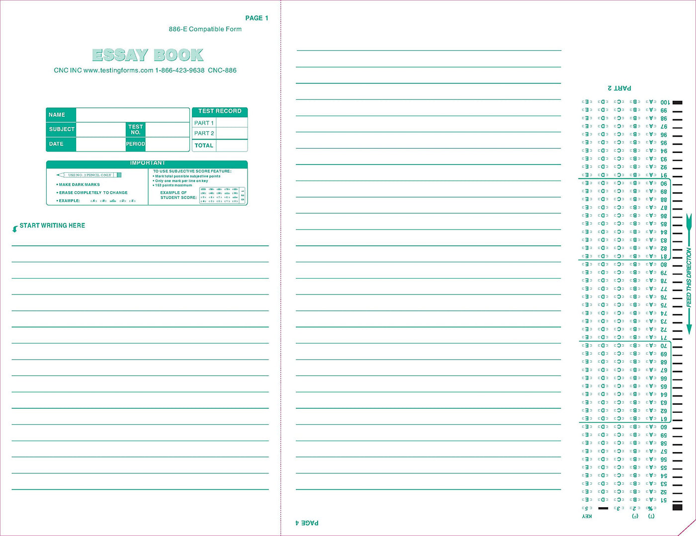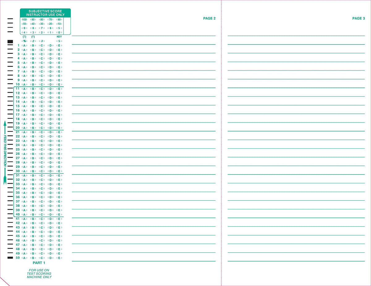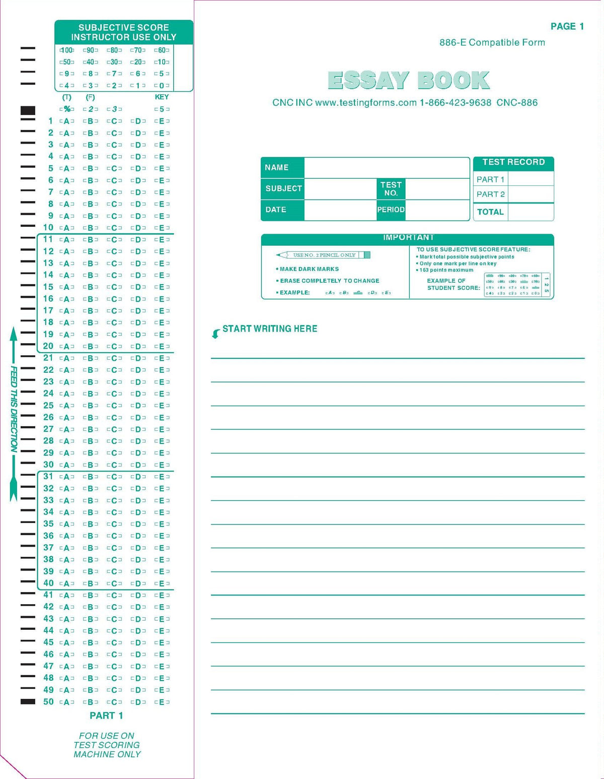 Compatible Form Test-886E Mini Test Form Book. Dimensions: 8.5'X11' Visual Alignment Notch Allows For Easy Alignment Of Many Papers At Once. There Are 100 Multiple Choice A-E Or T/F Questions On Each Side. 1-50 On The Front, 51-100 On The Back. These Are 100% Compatible. Can Also Serve As A Master Key With Answers